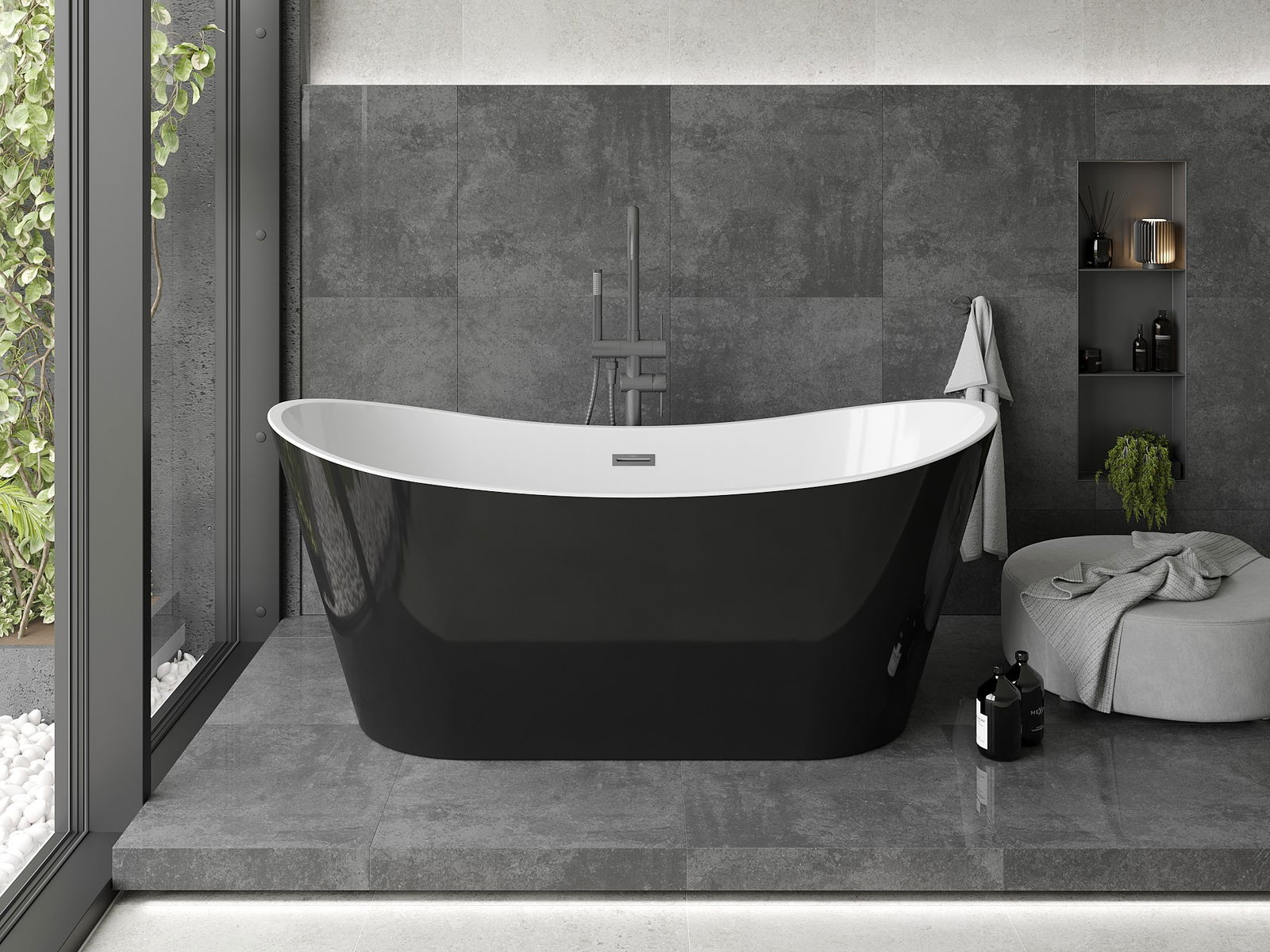 Mexen Montana vrijstaande badkuip 150 x 75 cm, wit/zwart, overloop gun metal - 52011507575-95