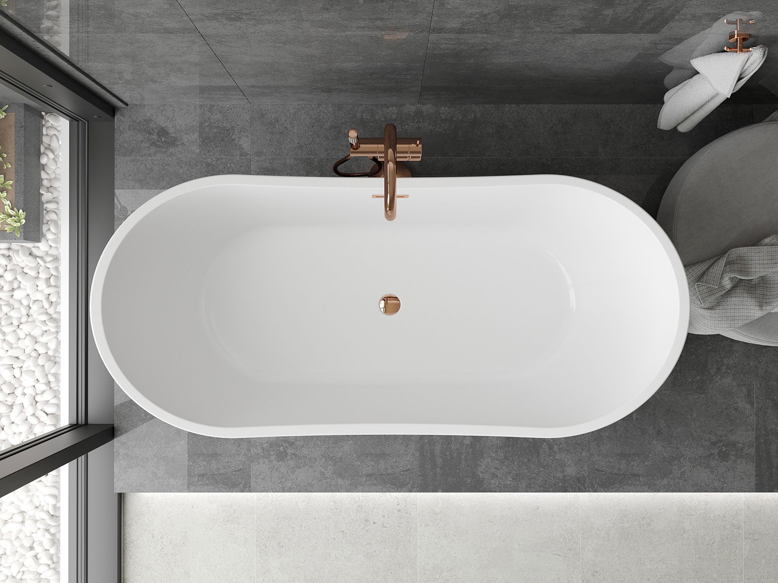 Mexen Montana vrijstaande badkuip 180 x 80 cm, wit, overloop roségoud - 52011808000-60