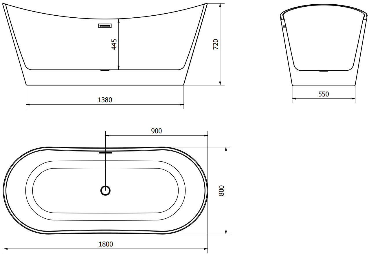 Mexen Montana vrijstaande badkuip 180 x 80 cm, wit/zwart, overloop gun gray geborsteld - 52011808075-66