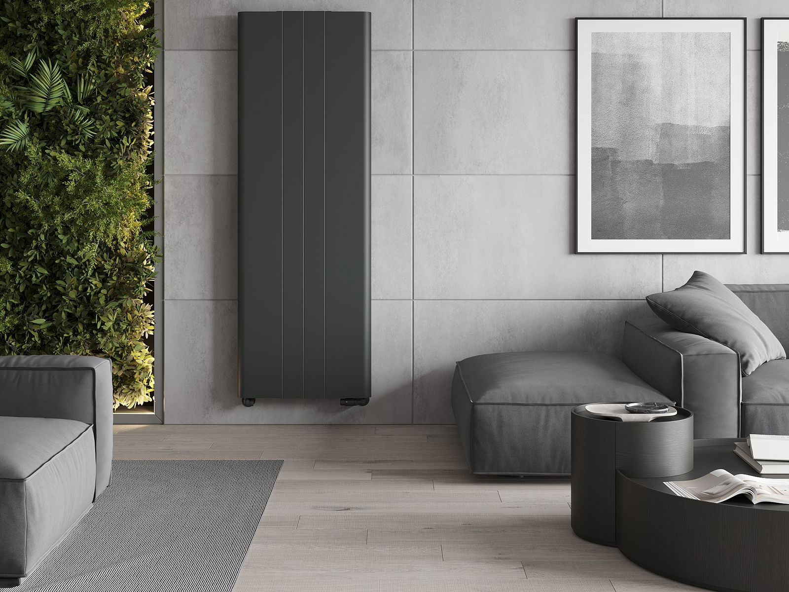 Mexen Line VR20SL paneelradiator 2000 x 400 mm, middenonderaansluiting, 945 W, antraciet - W6VR20SL-200-040-66