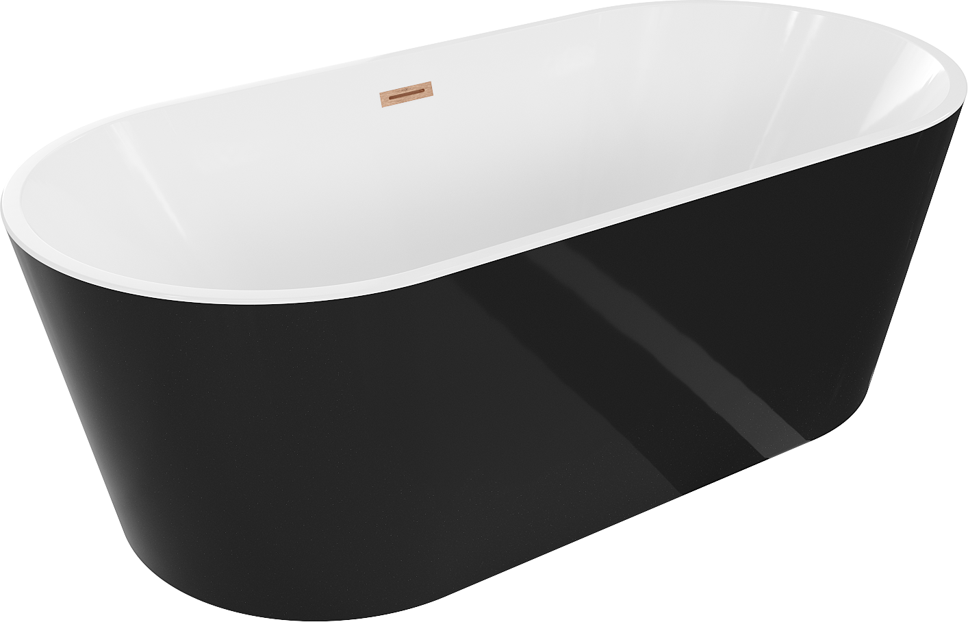Mexen Luna vrijstaande badkuip 180 x 80 cm, wit/zwart, overloop geborsteld koper - 52031808075-65