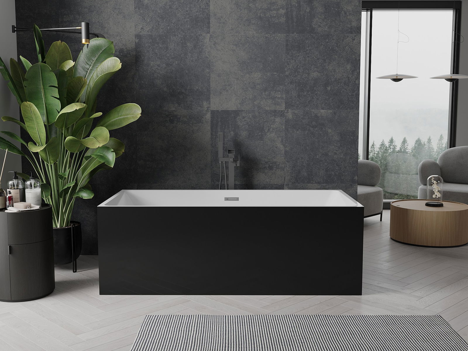 Mexen Nita vrijstaande badkuip 170 x 80 cm, wit/zwart, overloop gun grijs geborsteld - 52091708075-66