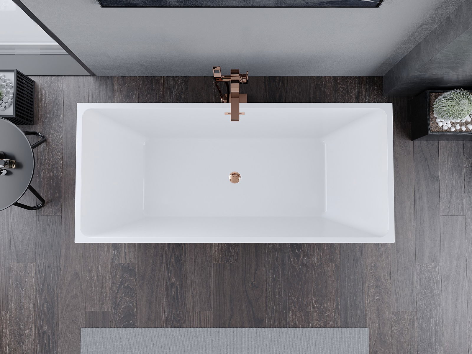 Mexen Lita vrijstaande badkuip 170 x 75 cm, wit, overloop roségoud - 52121707500-60