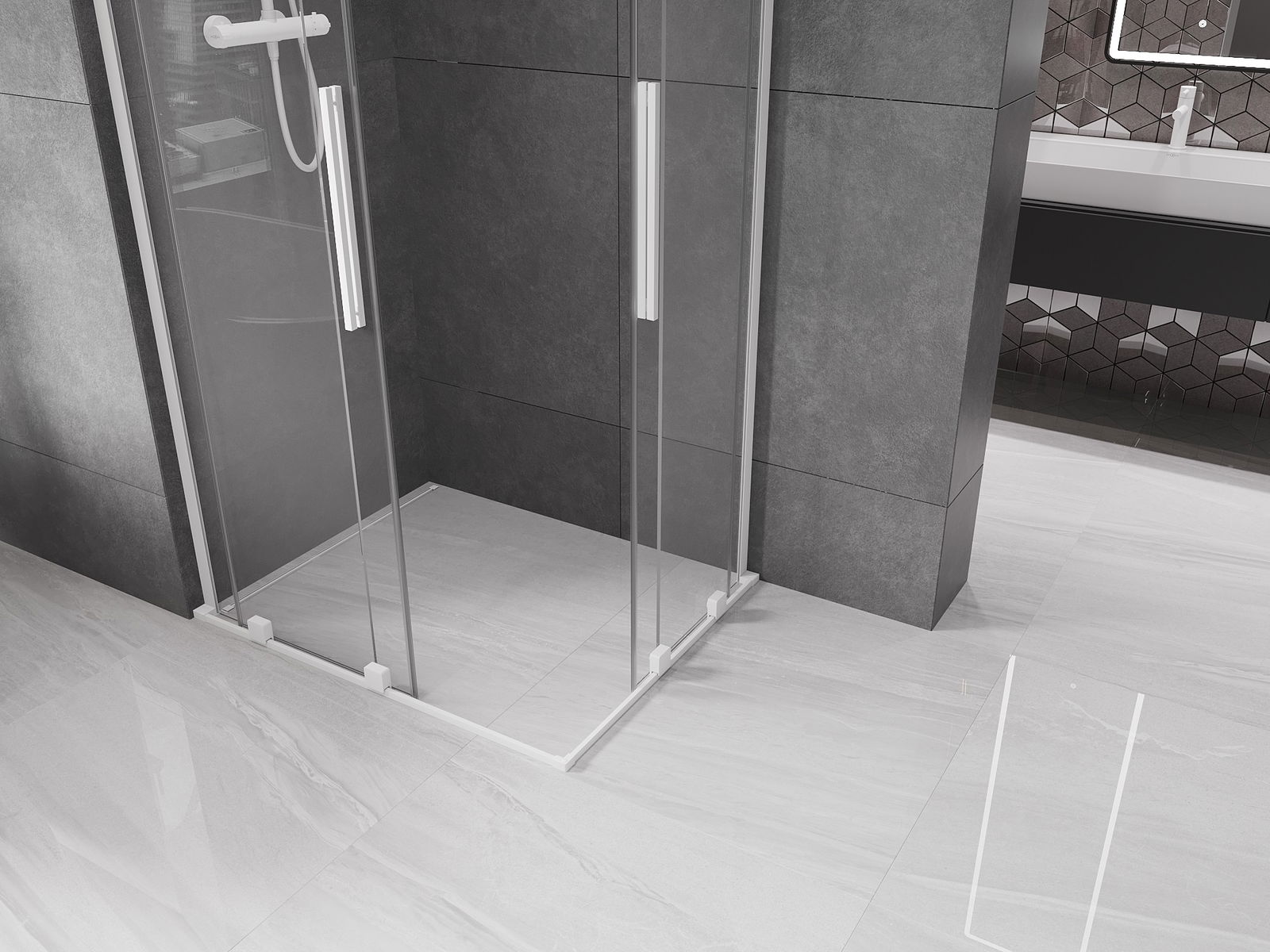 Dankzij het gebruik van een universeel montagesysteem kunnen douchedeuren naar behoefte aan de rechter- of linkerkant worden gemonteerd. Hierdoor kun je gemakkelijk een douche ontwerpen die aan de ruimte in de badkamer is aangepast.