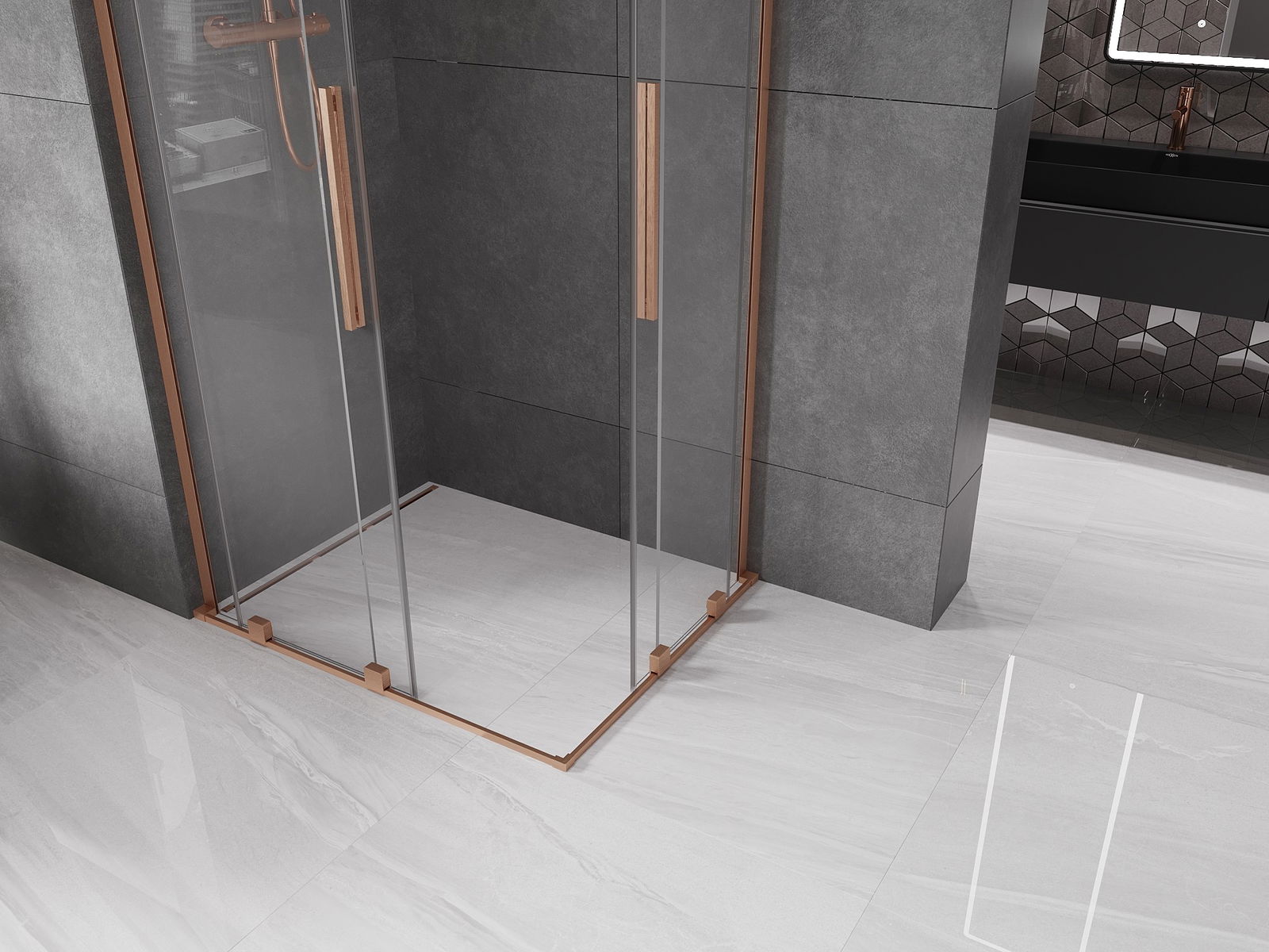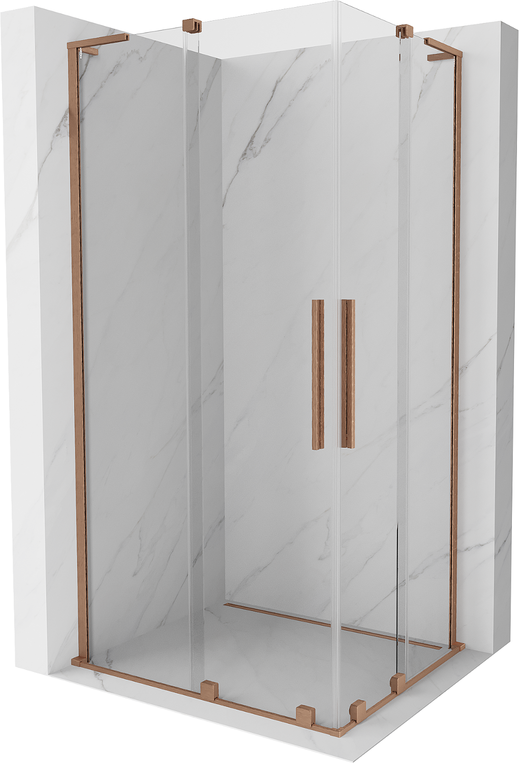 Mexen Velar L Duo schuifdouchecabine 90 x 80 cm, transparant, geborsteld koper - 871-090-080-02-03-65