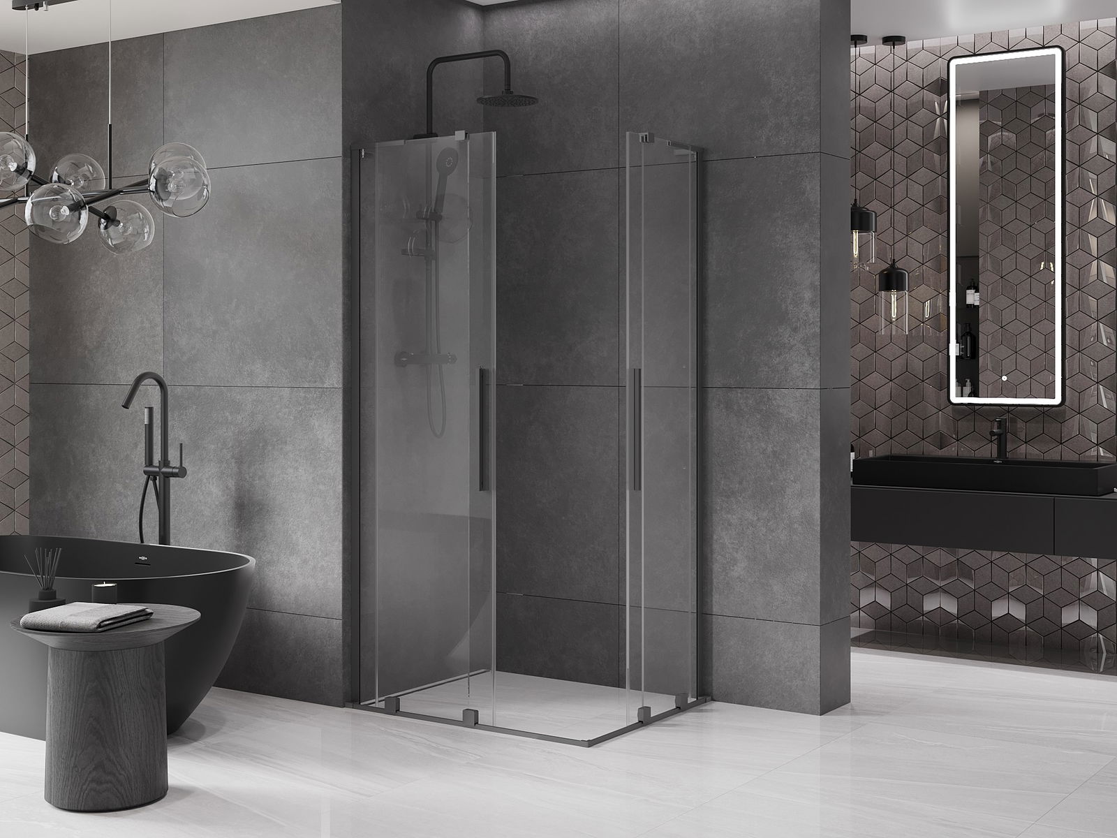 Mexen Velar L Duo schuifdouchecabine 90 x 80 cm, transparant, kanonmetaal - 871-090-080-02-03-95