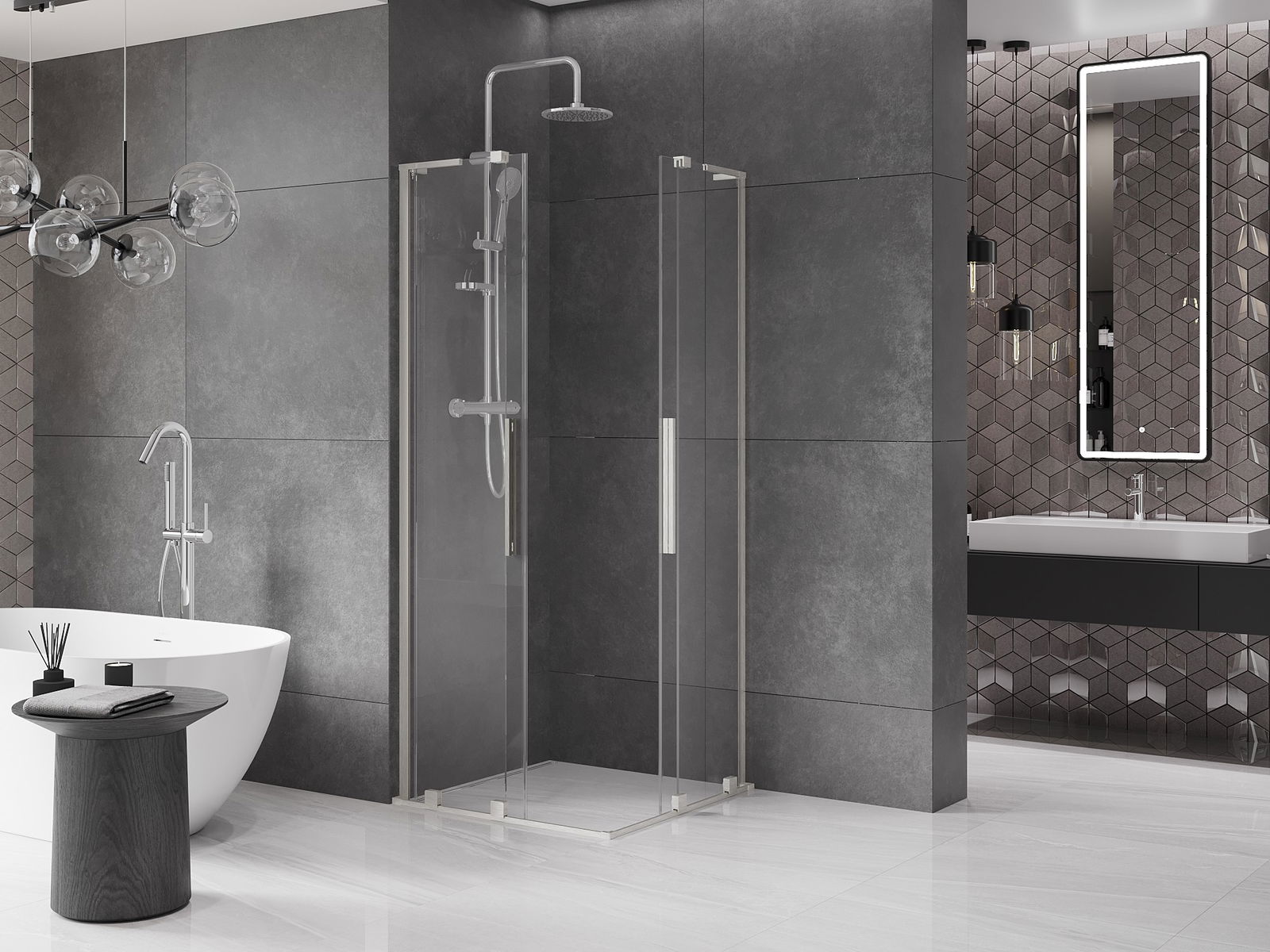 De handige en comfortabele handgreep is gemaakt van roestvrij staal. De modieuze vorm, gecombineerd met een afwerking die qua kleur aansluit bij de profielen, geeft het geheel een moderne en stijlvolle uitstraling en versterkt de esthetiek van elke badkamer.