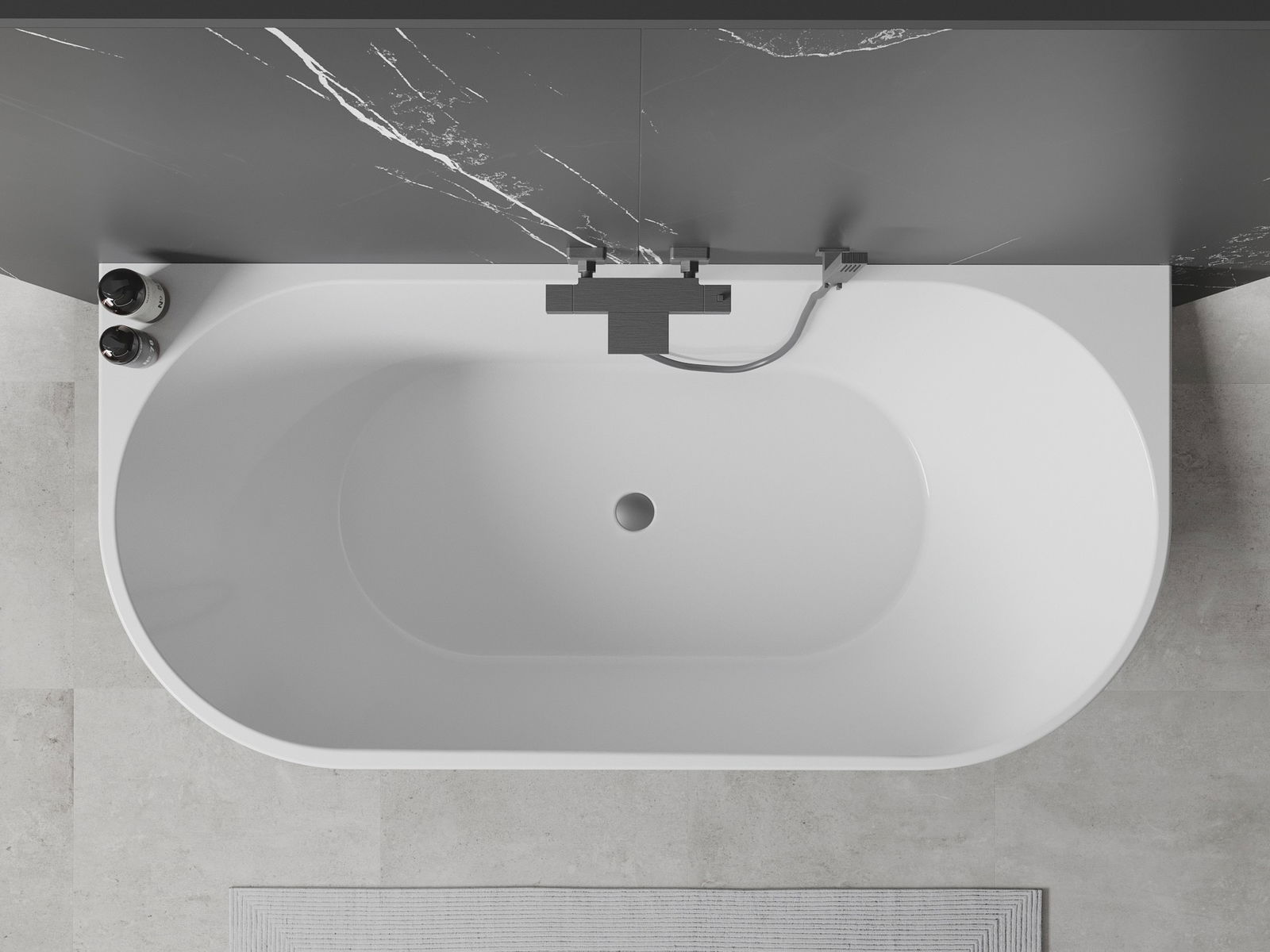 Mexen Oval vrijstaande ligbad tegen de wand 140 x 75 cm, wit/zwart, overloop gun metal - 52671407575-95