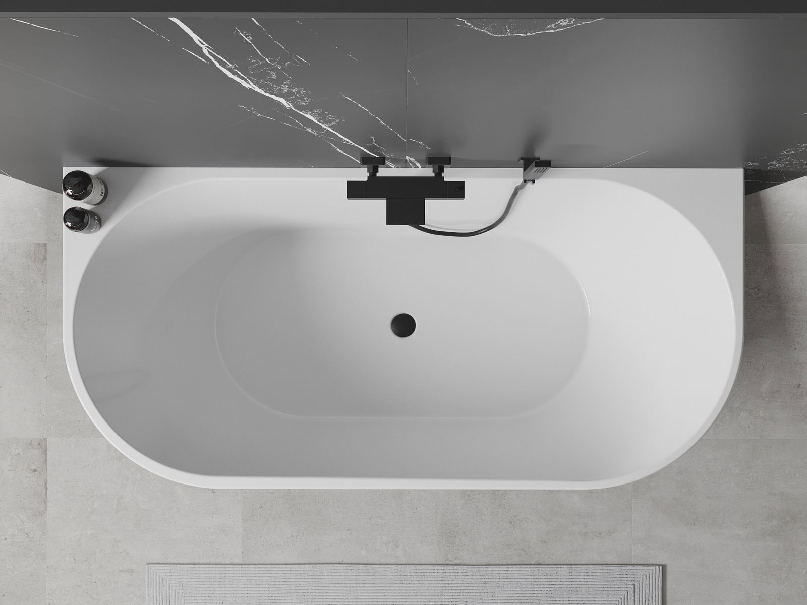 Mexen Oval vrijstaande tegen de muur staande badkuip 160 x 80 cm, wit/zwart, zwarte overloop - 52671608075-70