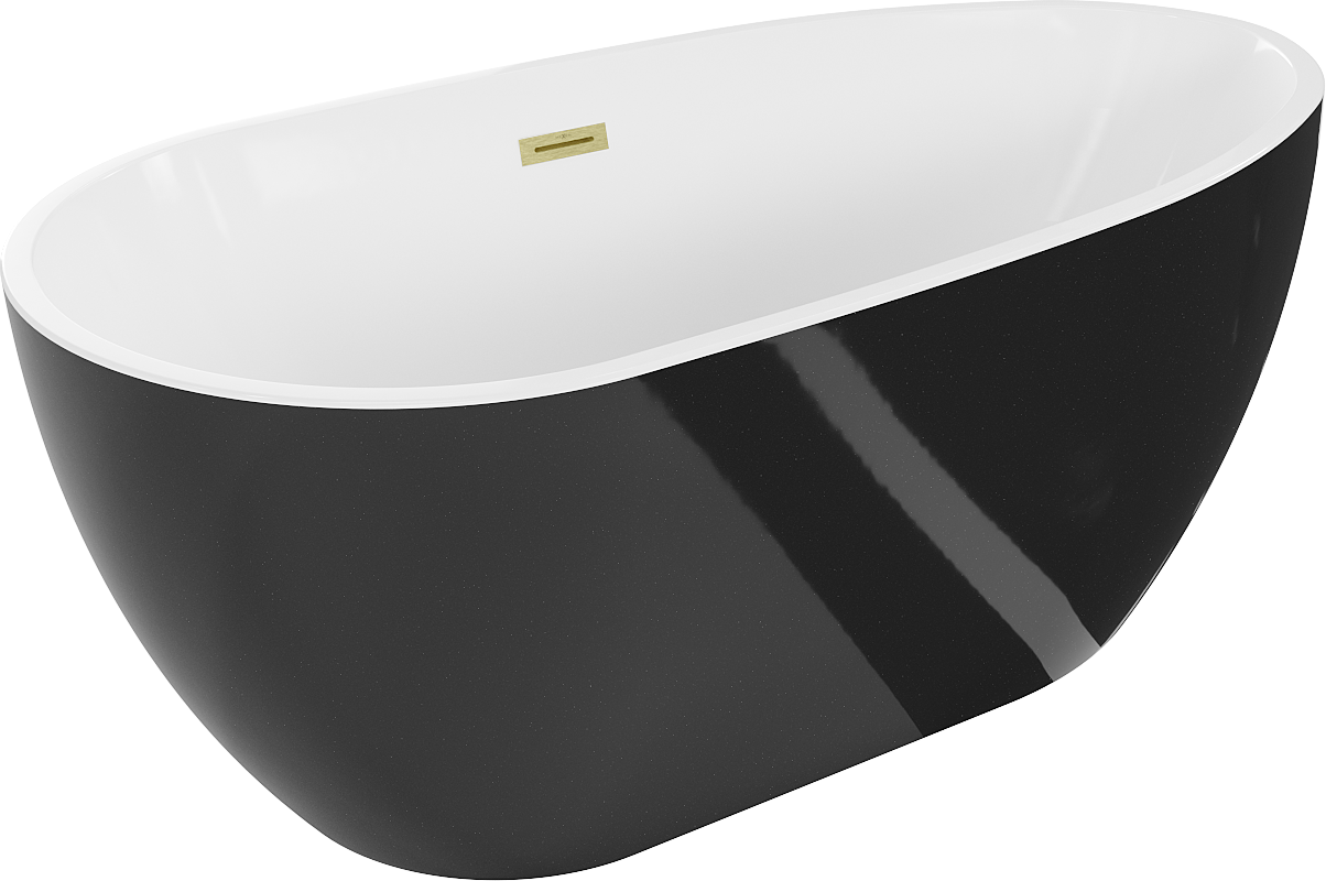 Wij bieden een vrijstaand bad aan, met de afmetingen 170 x 75 cm, in een elegante kleurencombinatie van wit en zwart, met een goud geborstelde afwerking. De ovale vorm en de hoge kwaliteit van sanitair acryl zorgen voor comfort en esthetiek op het hoogste niveau. Het bad is vrijstaand, eenvoudig te monteren en heeft een afvoer in het midden. Bovendien is het ontworpen met het oog op weerstand tegen matte plekken en UV-straling, wat langdurig gebruik zonder kwaliteitsverlies garandeert.
