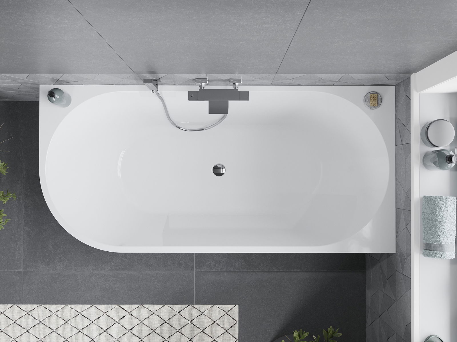 Mexen Mia is een elegant vrijstaand hoekbad met afmetingen van 150 x 75 cm, gemaakt van sanitair acryl, wat zorgt voor uitzonderlijke duurzaamheid en weerstand tegen dofheid en UV-straling. De klassieke witte kleur en glanzende afwerking passen perfect in moderne interieurs. Het bad is voorzien van een geïntegreerde overloop en wordt geleverd met een sifon en een klik-klak stop. Door de hoekmontage is het ideaal voor kleine badkamers, waar het comfort en stijl in één biedt.