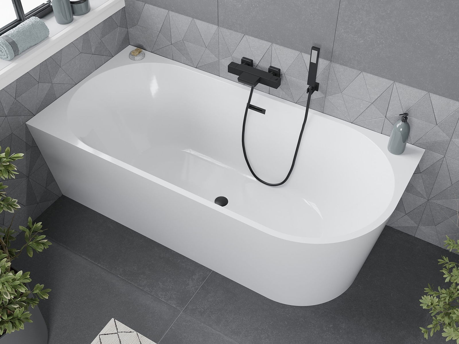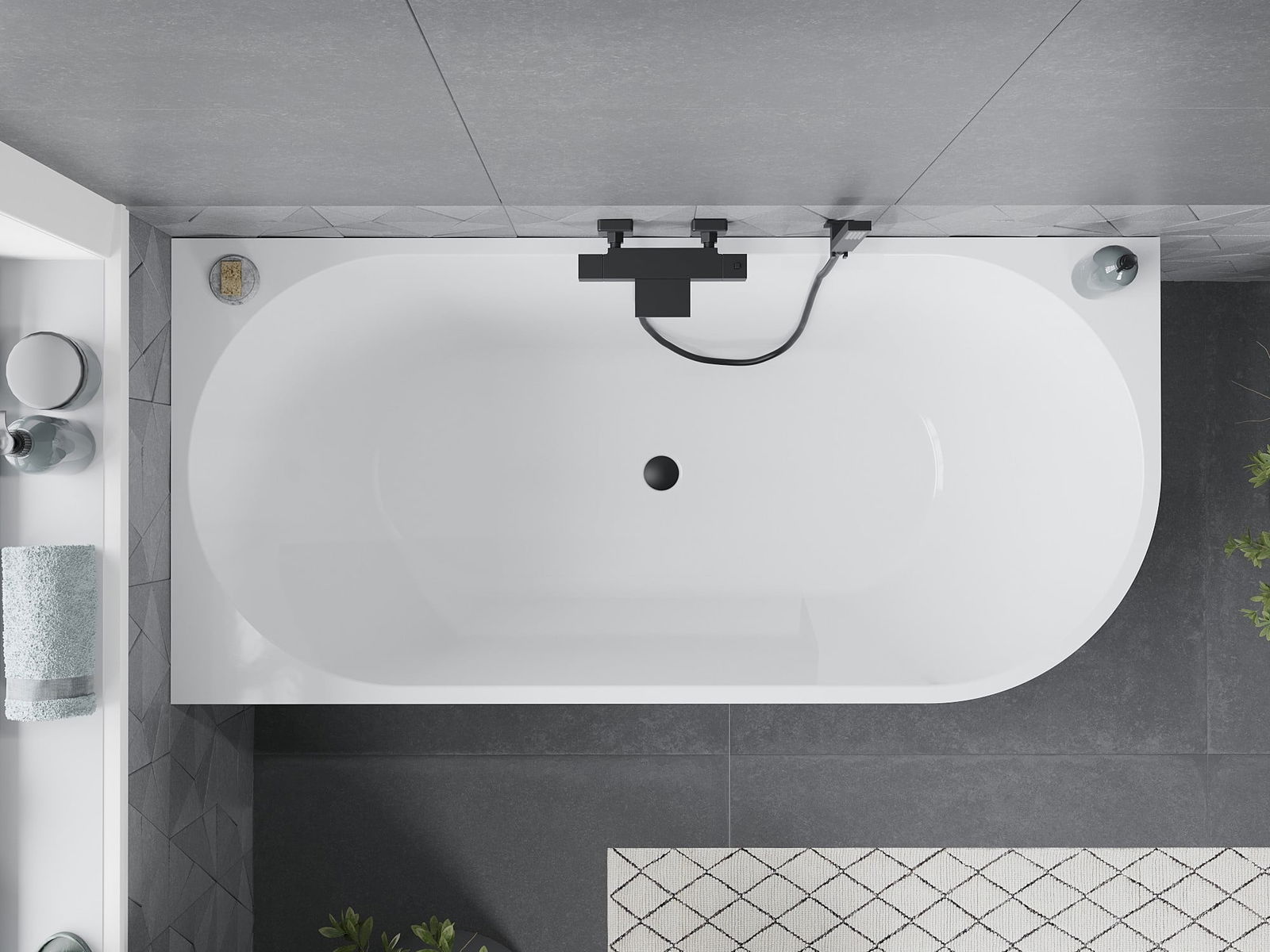 Mexen Mia vrijstaande hoekbad links 160 x 75 cm, wit, zwarte overloop - 52691607500L-70