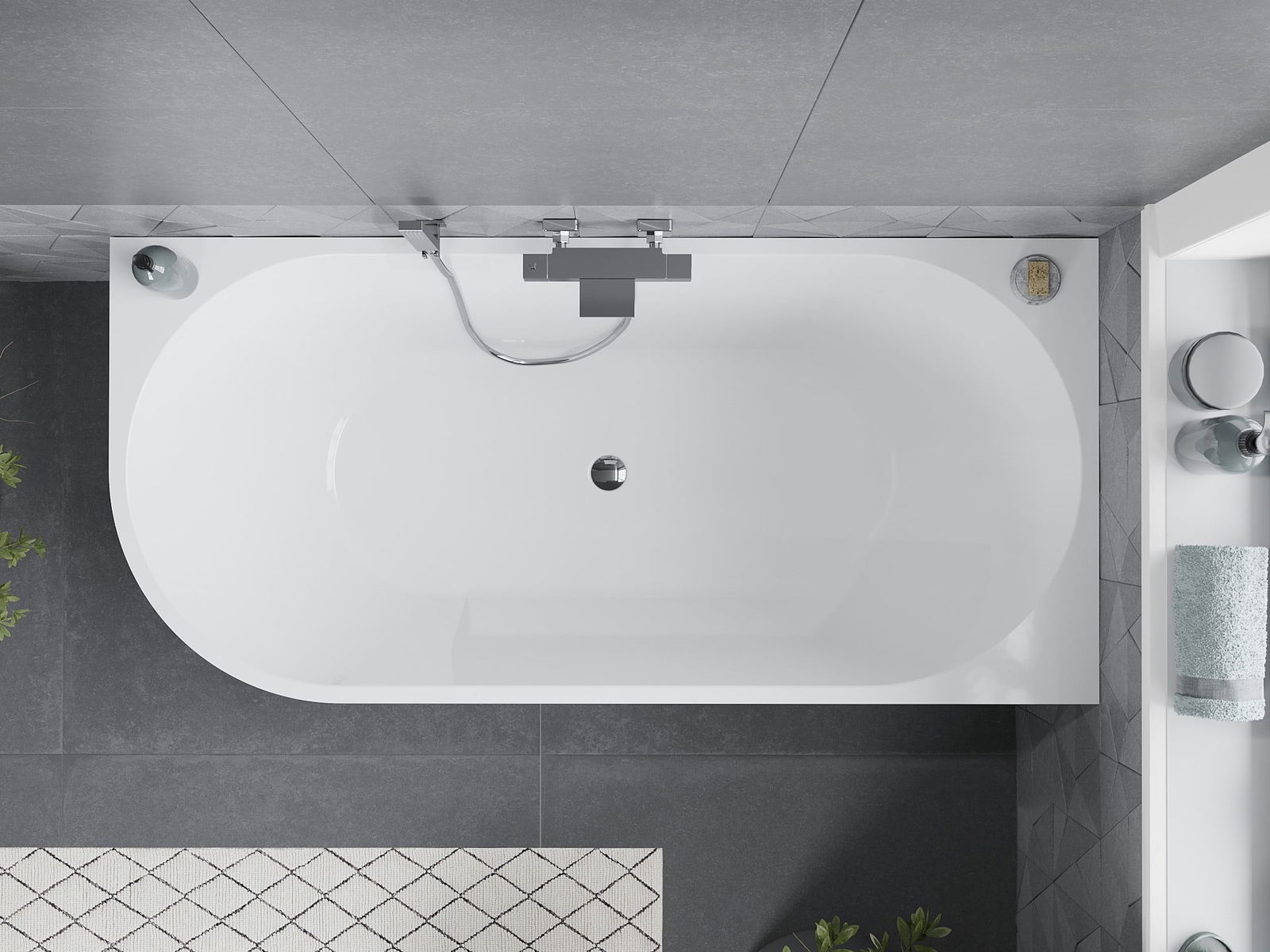 Mexen Mia vrijstaande hoekbadkuip rechts 170 x 80 cm, wit, chroom overloop - 52691708000P-01