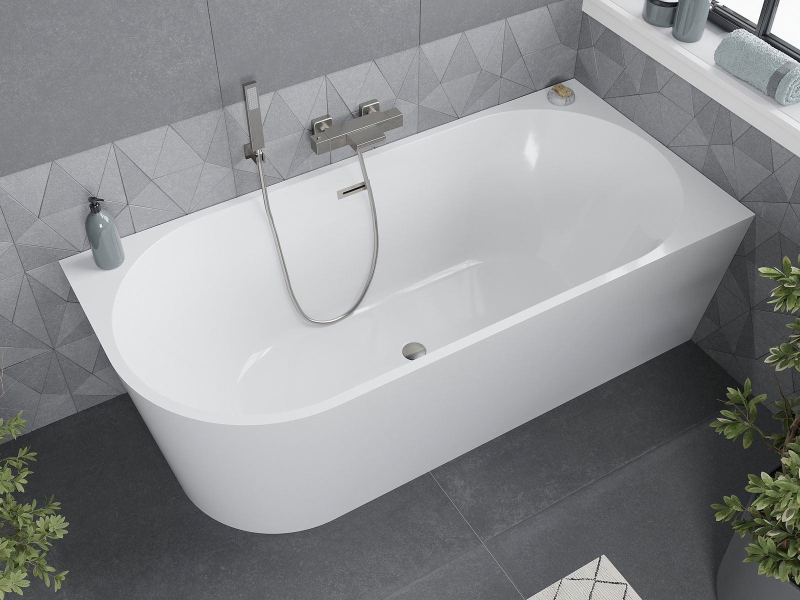 Mexen Mia is een vrijstaand hoekbad met afmetingen 170 x 80 cm, dat perfect in elke badkamer past. Gemaakt van sanitair acryl, combineert het elegantie met duurzaamheid. Het witte hoogglans oppervlak en de afwerking in geborsteld nikkel geven een moderne uitstraling. Het bad heeft een overloopgat voor functionaliteit en is bestand tegen dof worden en uv-straling voor langdurige glans. De set bevat een sifon en een klikklak stop.