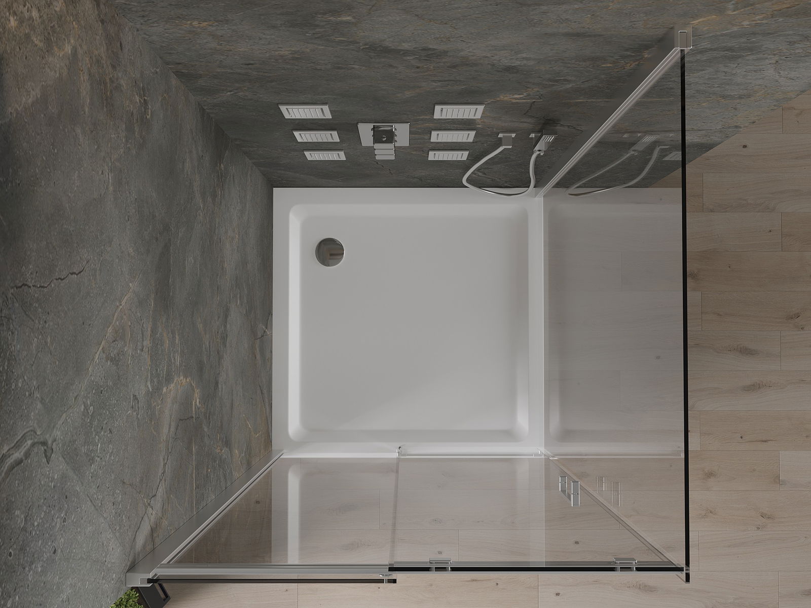 Schuifdeuren bewegen op speciale rails en hebben geen extra ruimte nodig om te openen, waardoor ze geschikt zijn voor kleinere badkamers. Dankzij dubbele metalen wielen is hun beweging soepel.