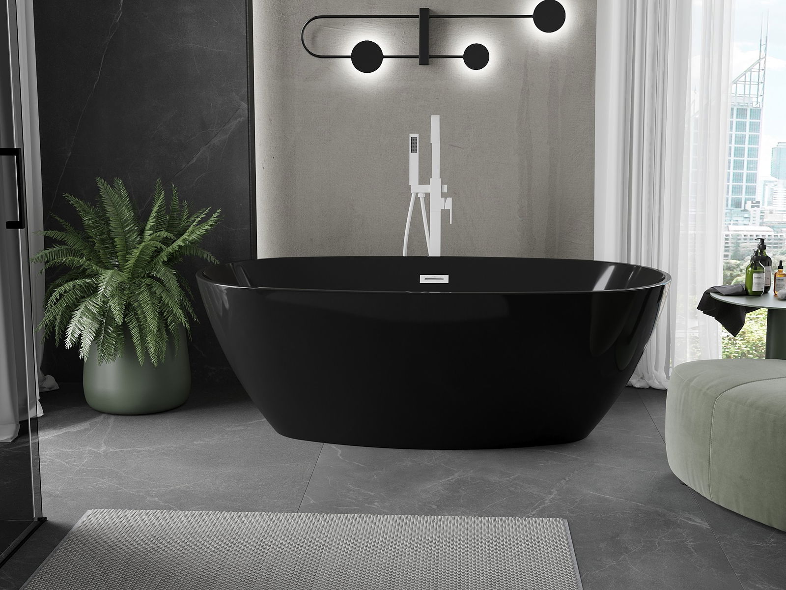 Mexen Eris vrijstaande badkuip 170 x 80 cm, zwart, witte overloop - 53441708070-20