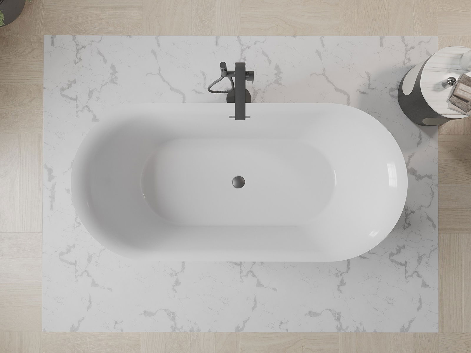 Het bad is uitgerust met verstelbare pootjes, die het mogelijk maken om het bad waterpas te zetten, zelfs op een oneffen oppervlak. Een praktische oplossing die meer stabiliteit en veiligheid biedt tijdens het gebruik en gemakkelijk te monteren is.