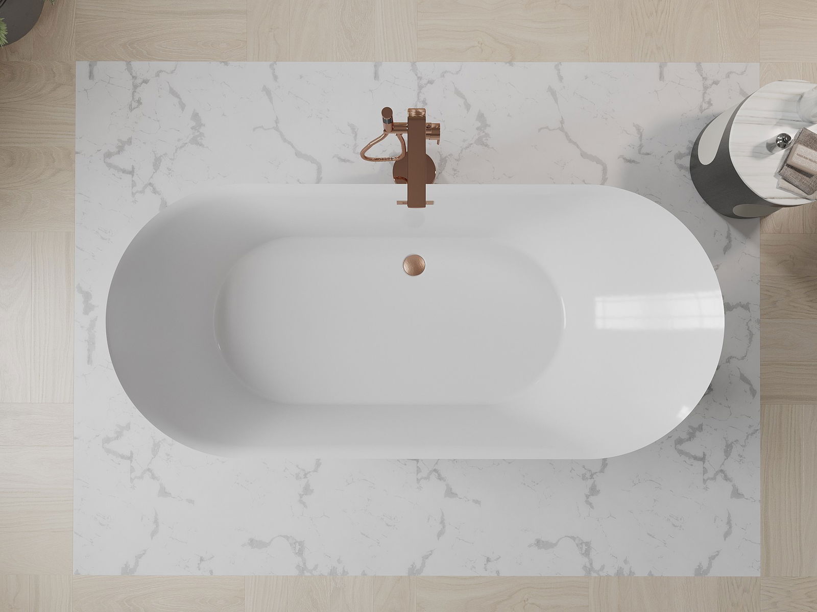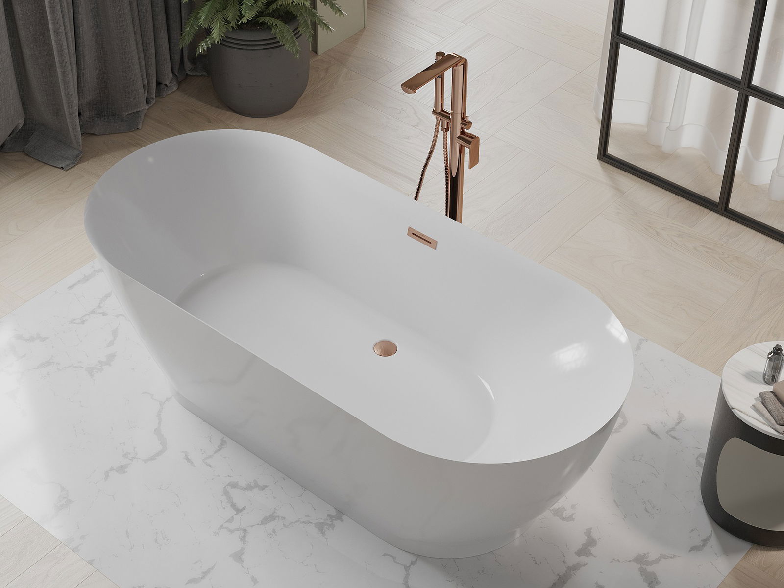 Mexen Roxy vrijstaande badkuip 180 x 85 cm, wit, geborsteld koper overloop - 51201808500-65