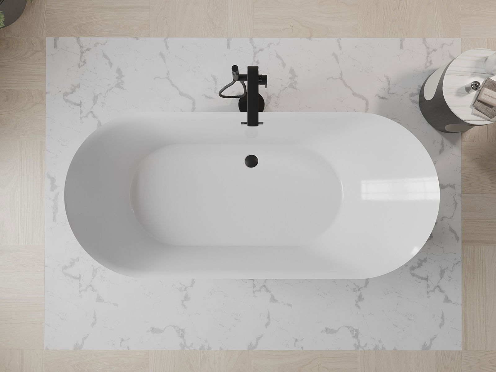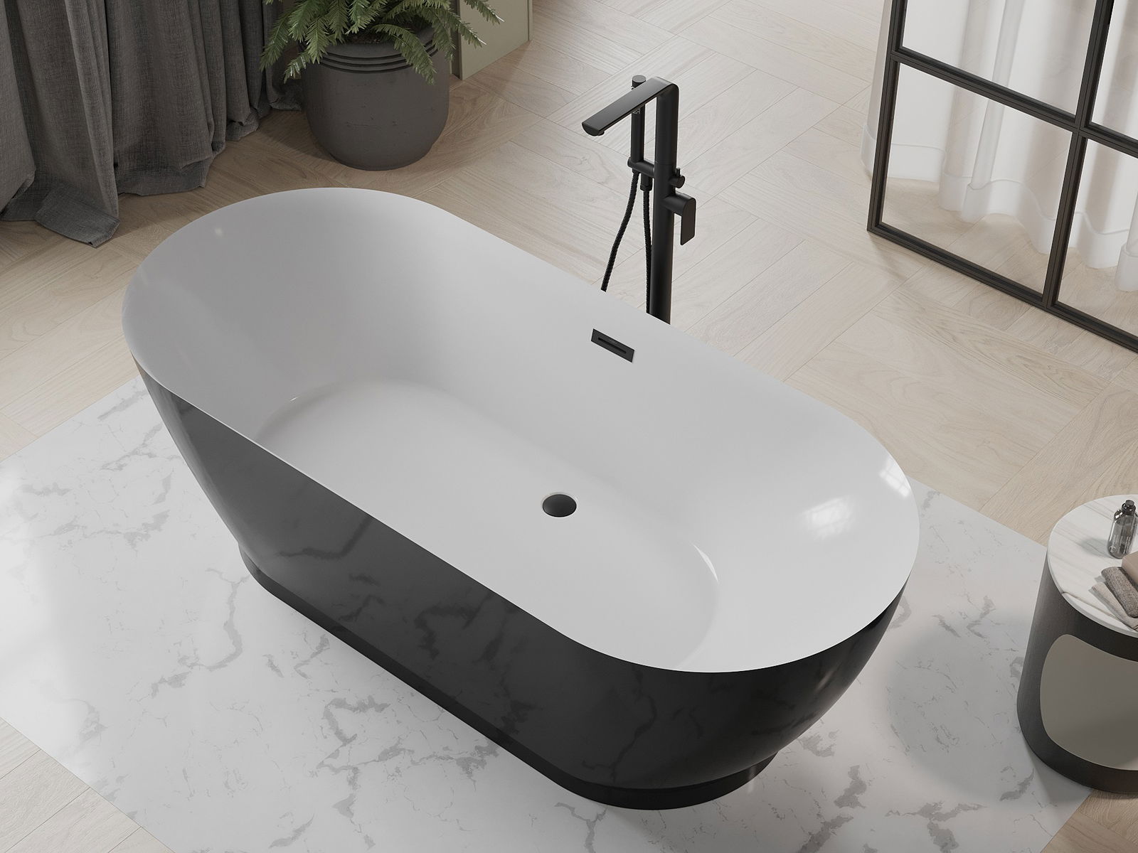 Mexen Roxy vrijstaande badkuip 180 x 85 cm, wit/zwart, zwarte overloop - 51201808575-70