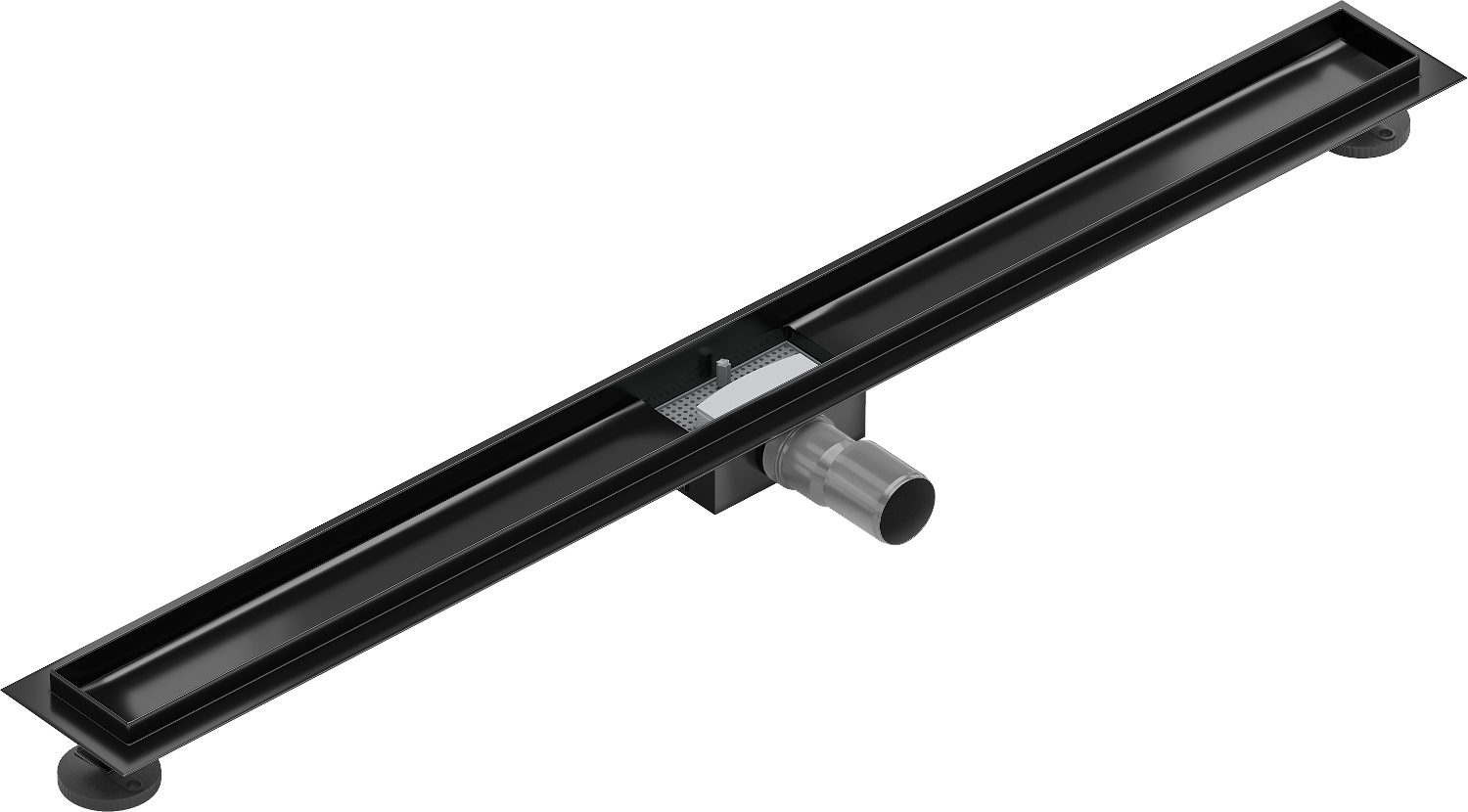 De afvoer is uitgerust met verstelbare pootjes, die het mogelijk maken om de juiste hoogte van de afvoer aan te passen en waterpas te stellen op een ongelijke ondergrond. Op deze manier is de afvoer nog beter aangepast aan de omstandigheden van de betreffende badkamer.