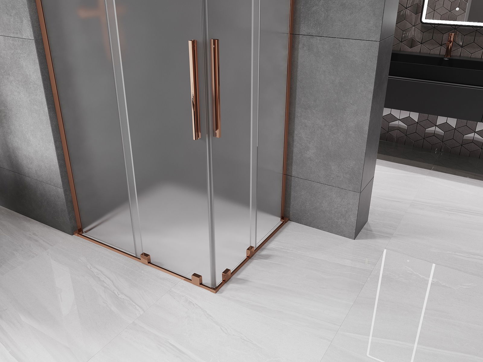 Mexen Velar L Duo schuifdouchecabine 100 x 90 cm, matglas, roze goud - 871-100-090-02-33-60