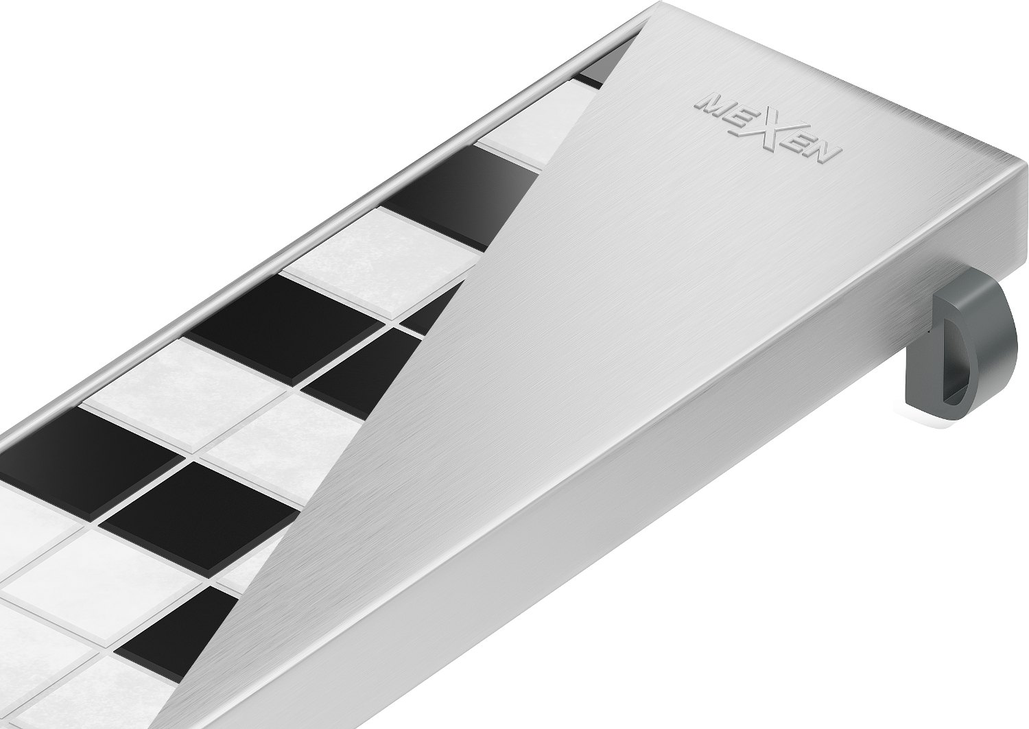 Tweedelige afdekplaat met de mogelijkheid om op elk moment te draaien, waardoor de inrichting kan worden veranderd. Aan de ene kant is er glad roestvrij staal, na omdraaien kan de afdekplaat worden ingebouwd met tegels om een verbinding met de vloer te creëren.