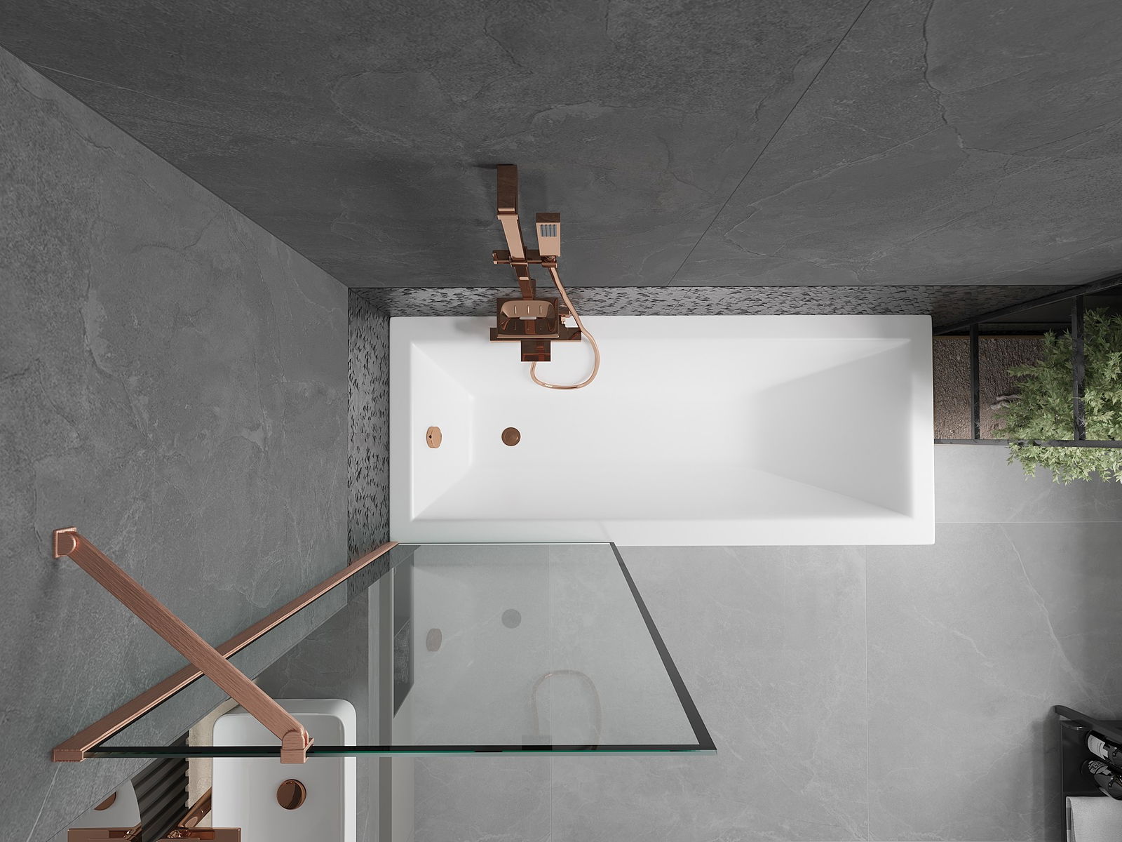 Mexen Next badwand scherm 1-delig 70 x 150 cm, zwart frame, geborsteld koper - 895-070-000-00-70-65