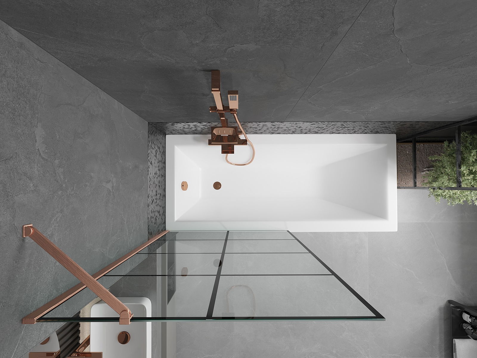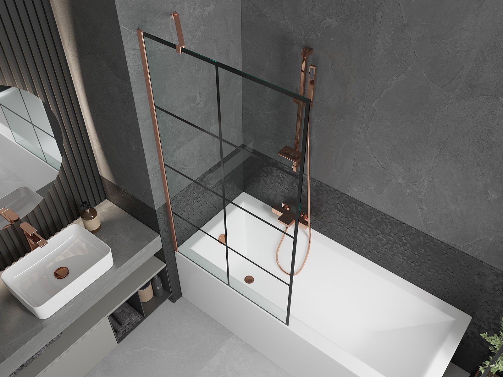 Mexen Next badwand scherm 1-delig 90 x 150 cm, zwart rooster, geborsteld koper - 895-090-000-00-77-65