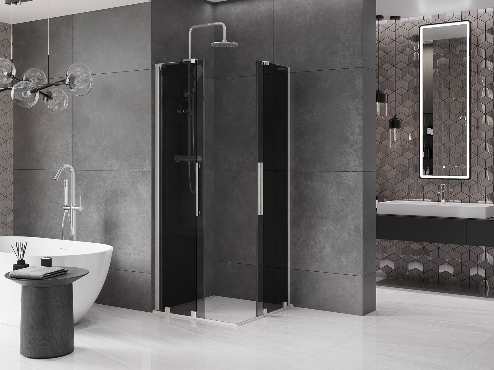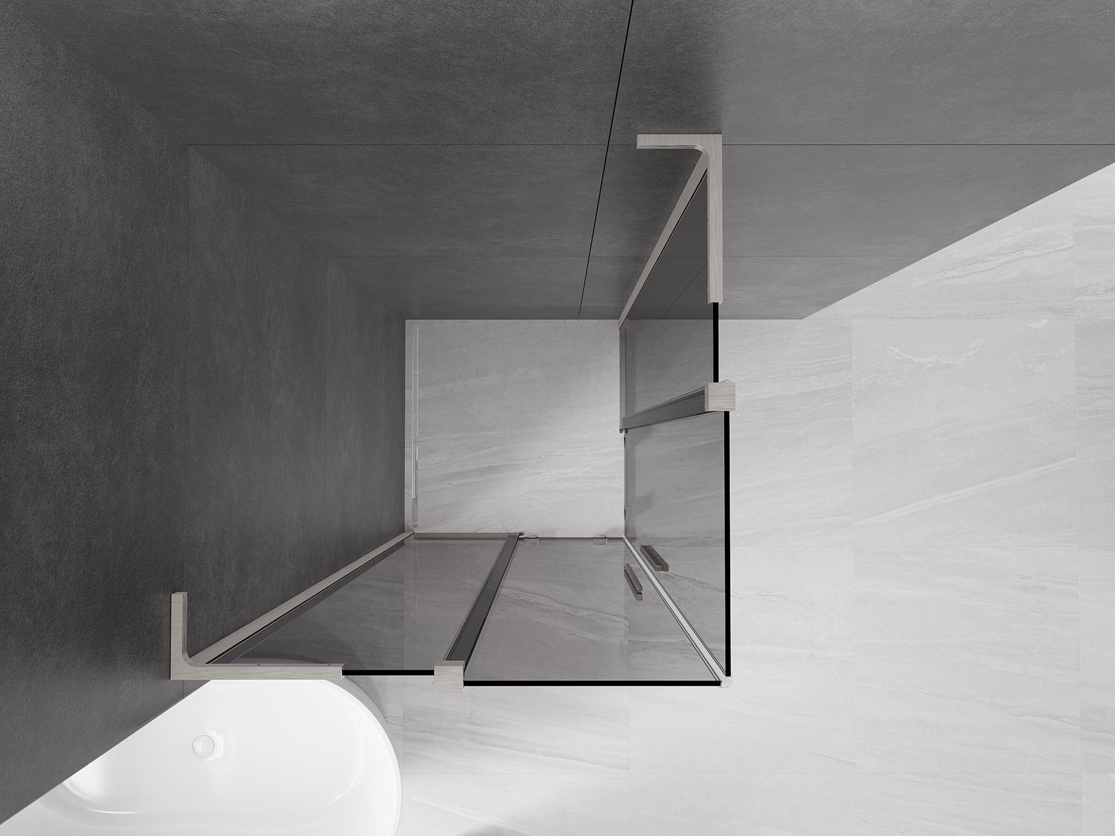 Het handige en comfortabele handvat is gemaakt van roestvrij staal. De modieuze vorm in combinatie met de afwerking die is afgestemd op de kleur van de profielen geeft het geheel een moderne en stijlvolle uitstraling, en benadrukt de esthetiek van elke badkamer.