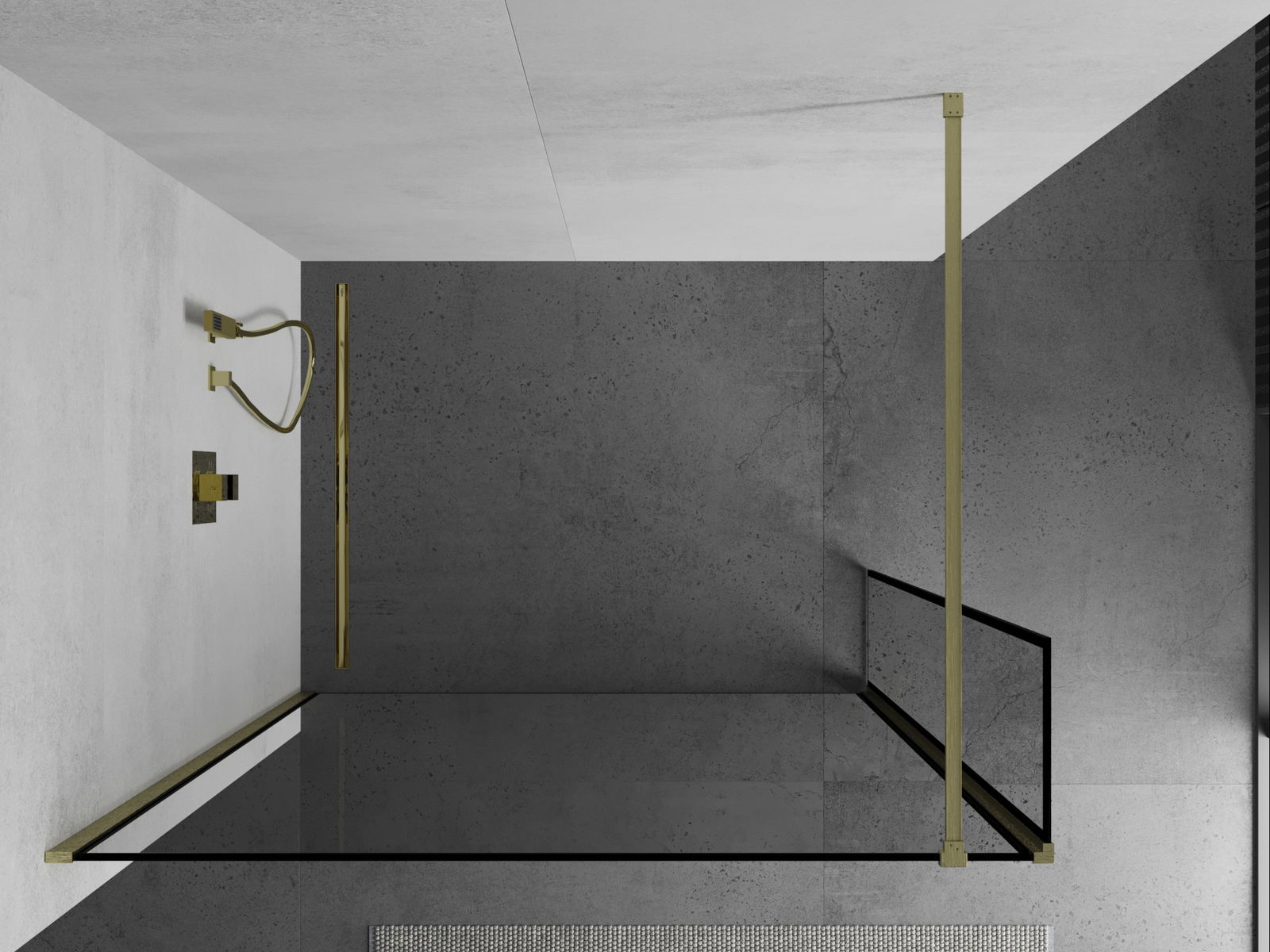 Mexen Kioto douchewand Walk-in 160 x 30 cm, zwart frame, geborsteld goud - 800-160-212-55-70-030