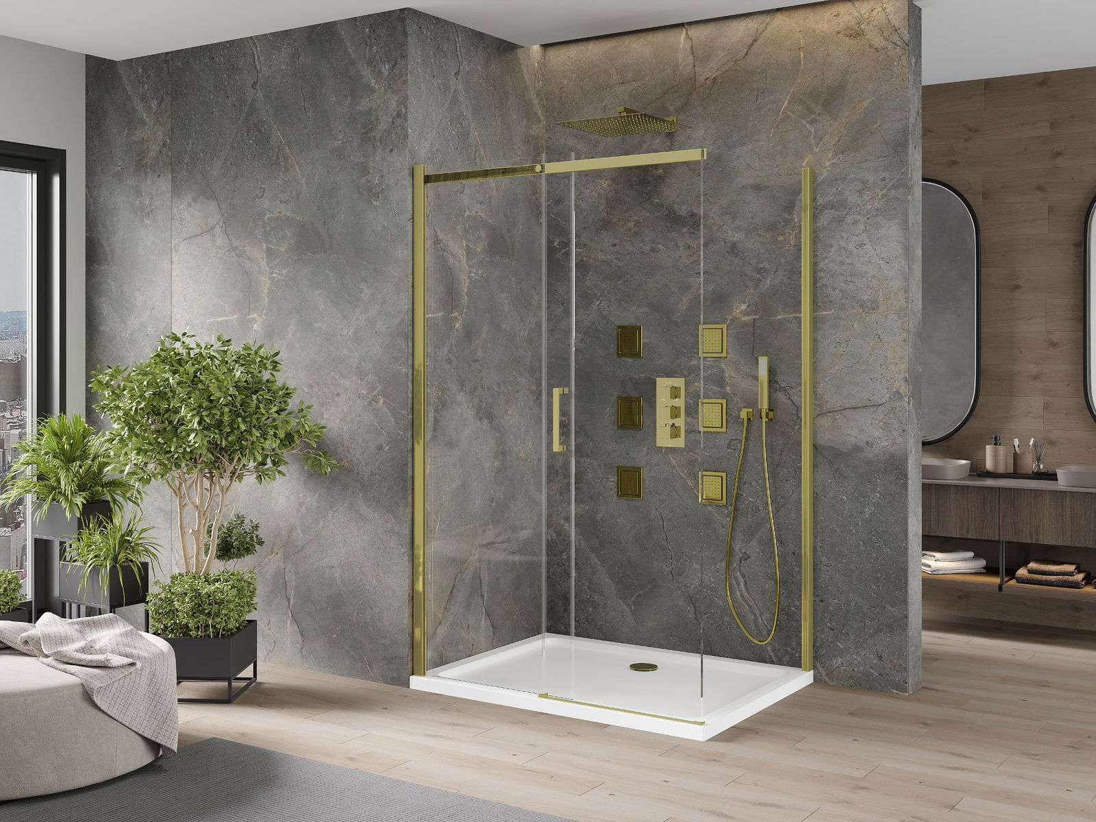 Mexen Omega douchecabine schuifbaar 130 x 80 cm, transparant, goud + Flat douchebak - 825-130-080-50-00-4010