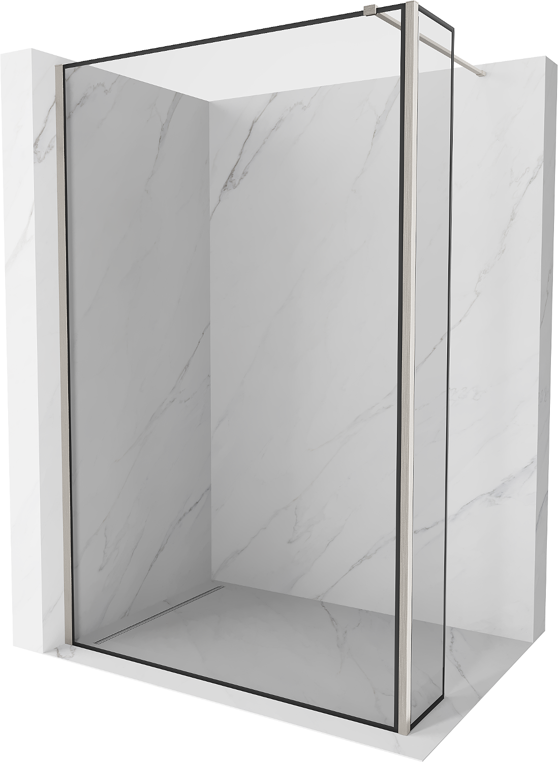 Mexen Kioto douchewand Walk-in 150 x 30 cm, zwart frame, geborsteld nikkel - 800-150-212-97-70-030