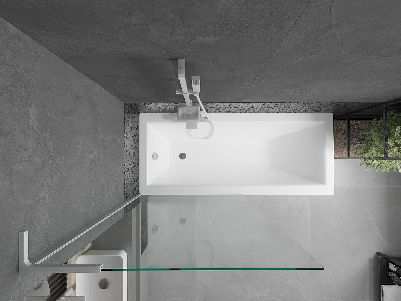 Dankzij het gebruik van een universeel montagesysteem kan het scherm aan de rechter- of linkerkant worden gemonteerd, afhankelijk van de behoeften. Op deze manier kunt u eenvoudig een douche ontwerpen die is aangepast aan de ruimte van de badkamer.