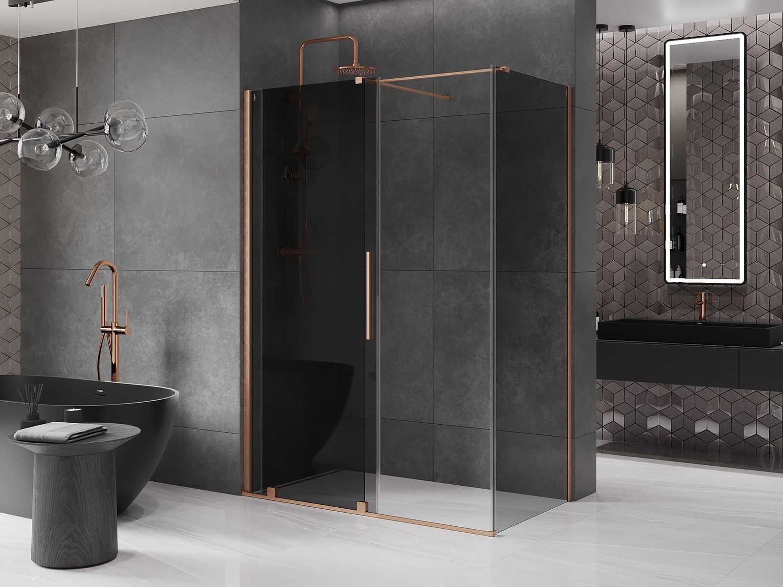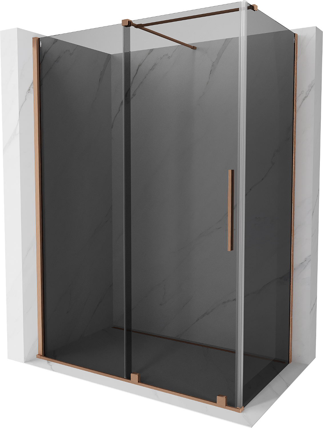 Mexen Velar schuifdouchecabine 130 x 70 cm, grafiet, geborsteld koper - 871-130-070-41-65