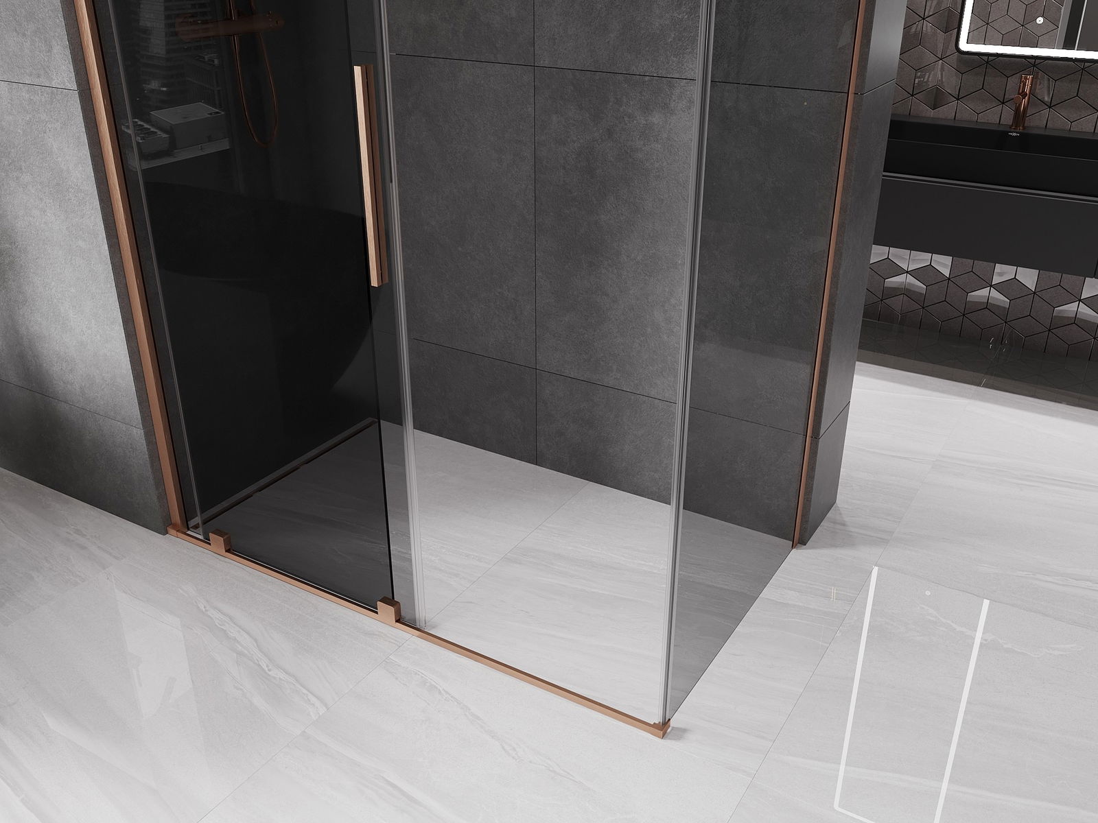 Mexen Velar schuifdouchecabine 160 x 85 cm, grafiet, geborsteld koper - 871-160-085-41-65