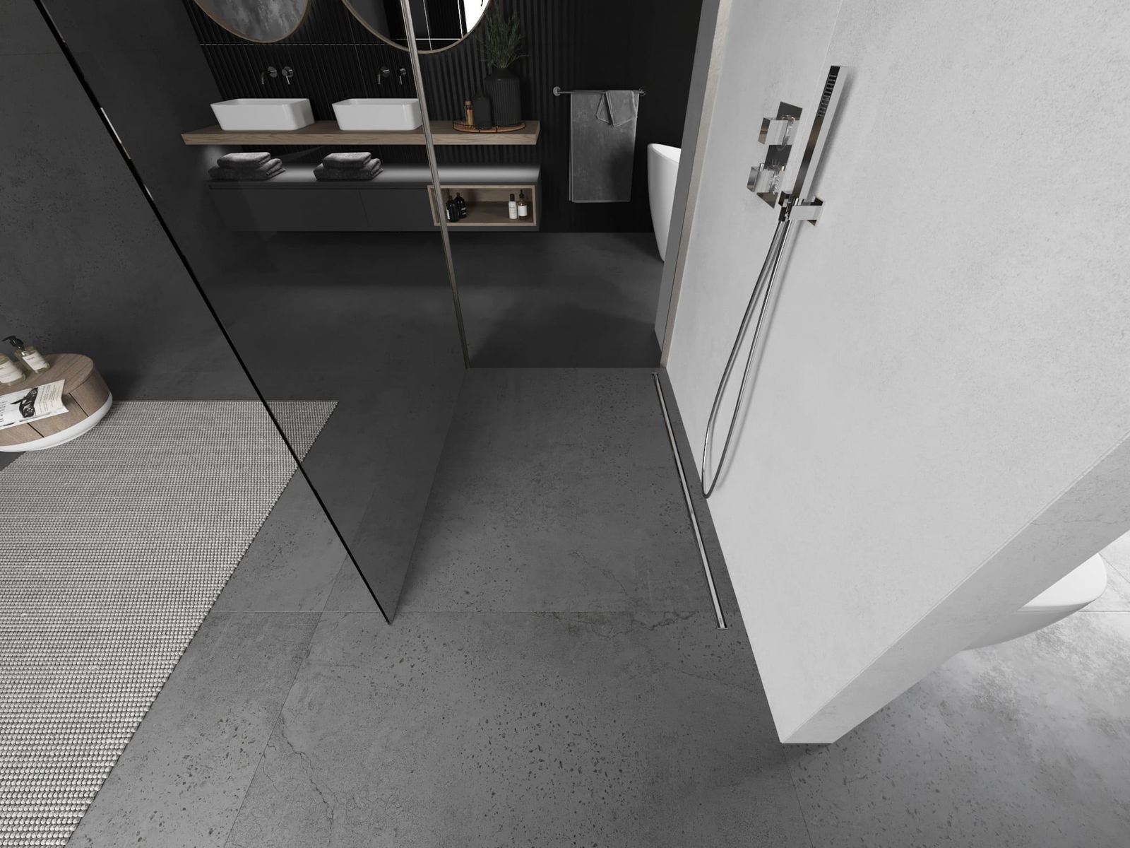 Het product kan naar behoefte zowel op de douchebak als direct op de vloer worden gemonteerd. De universele montagewijze maakt het mogelijk het product aan te passen aan verschillende soorten badkamers en ruimtelijke configuraties.