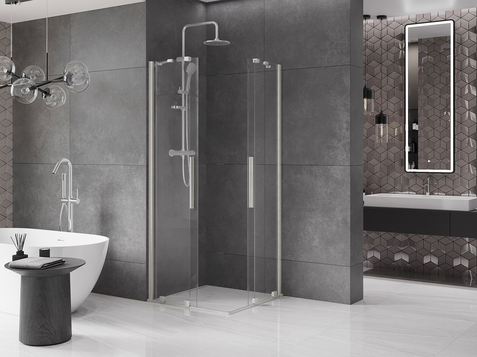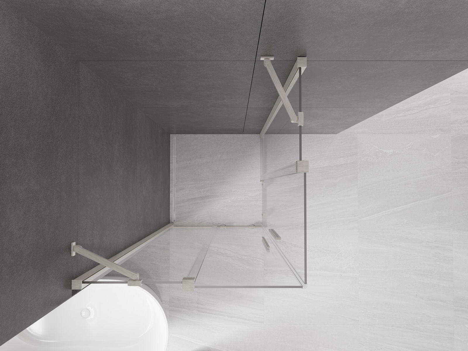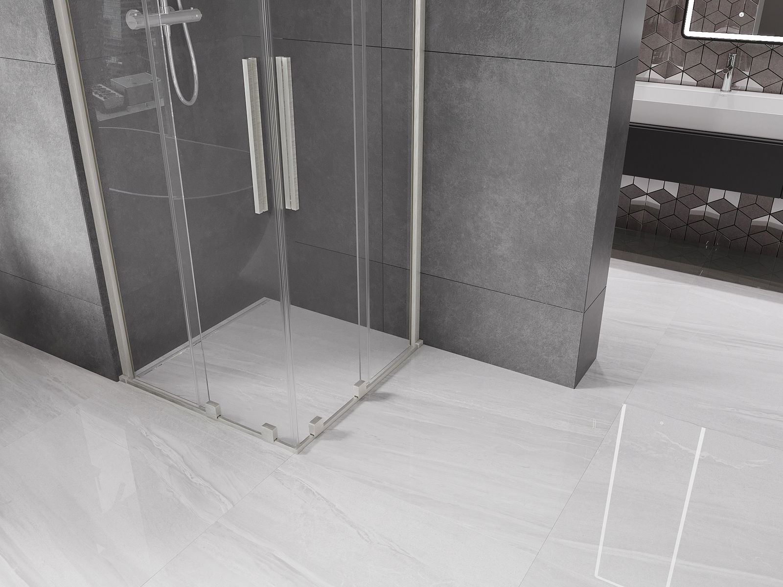 Het handige en comfortabele handvat is gemaakt van roestvrij staal. De modieuze vorm in combinatie met de afwerking die is afgestemd op de kleur van de profielen geeft het geheel een moderne en stijlvolle uitstraling, en benadrukt de esthetiek van elke badkamer.