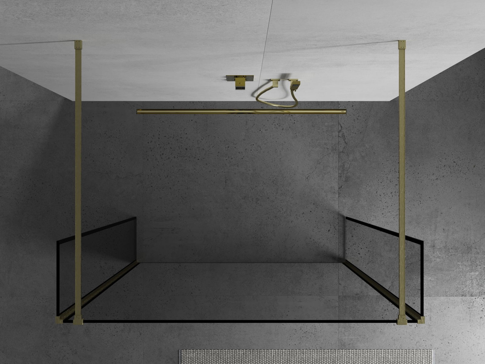 Mexen Kioto vrijstaande douchewand 110 x 30 x 30 cm, zwart frame, geborsteld goud - 800-110-030-222-55-70-030