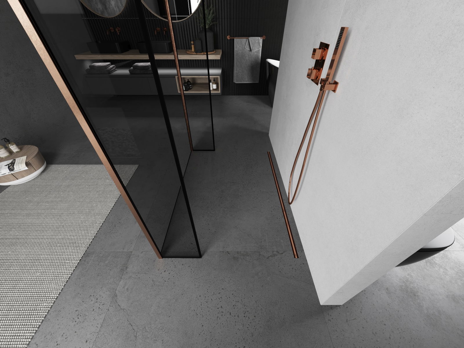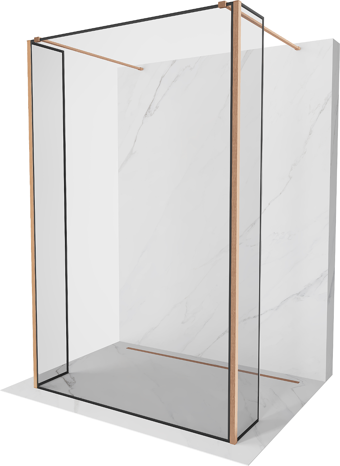 Mexen Kioto vrijstaande douchewand 140 x 30 x 30 cm, zwart frame, geborsteld koper - 800-140-030-222-65-70-030