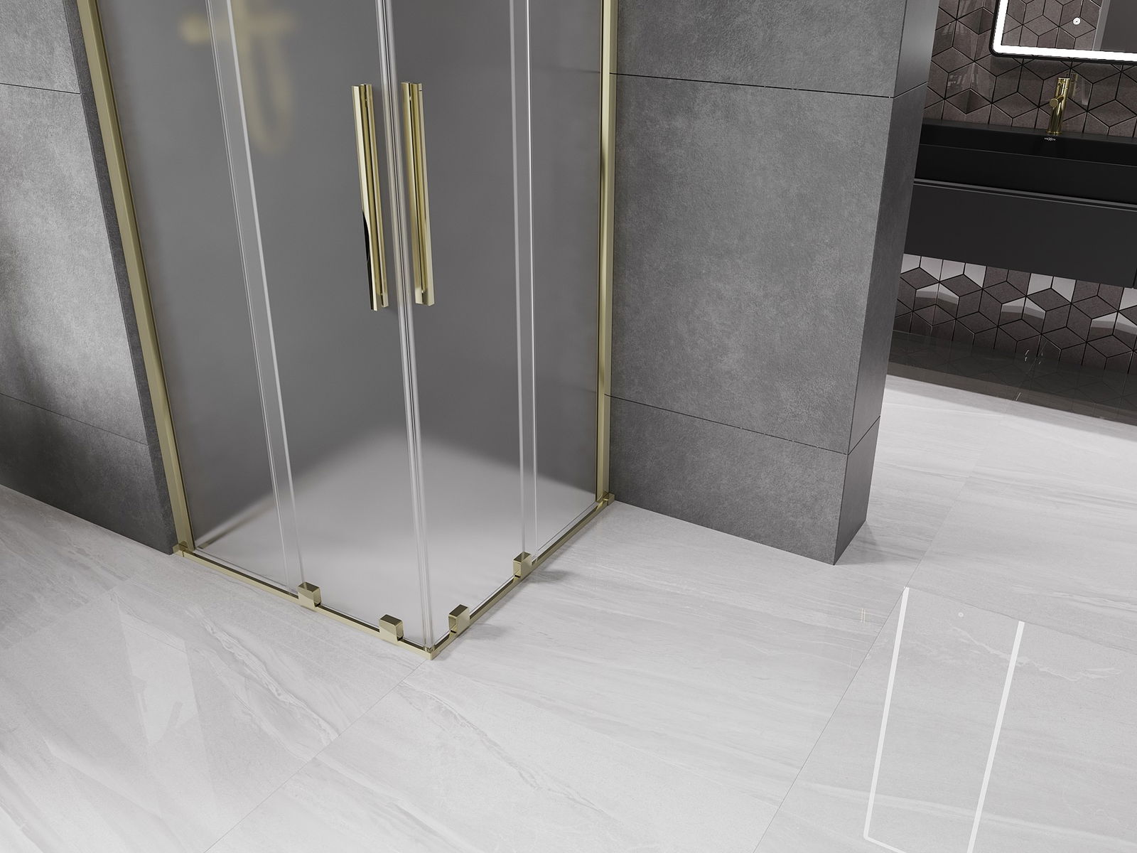 Mexen Velar Duo schuifdouchecabine 90 x 90 cm, matglas, goud - 871-090-090-32-50
