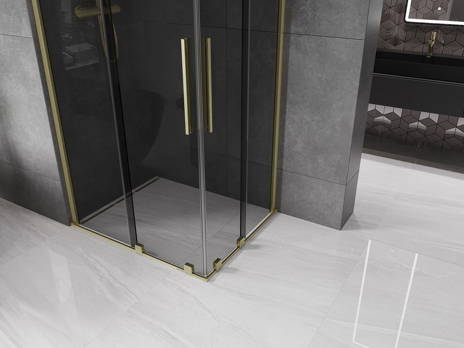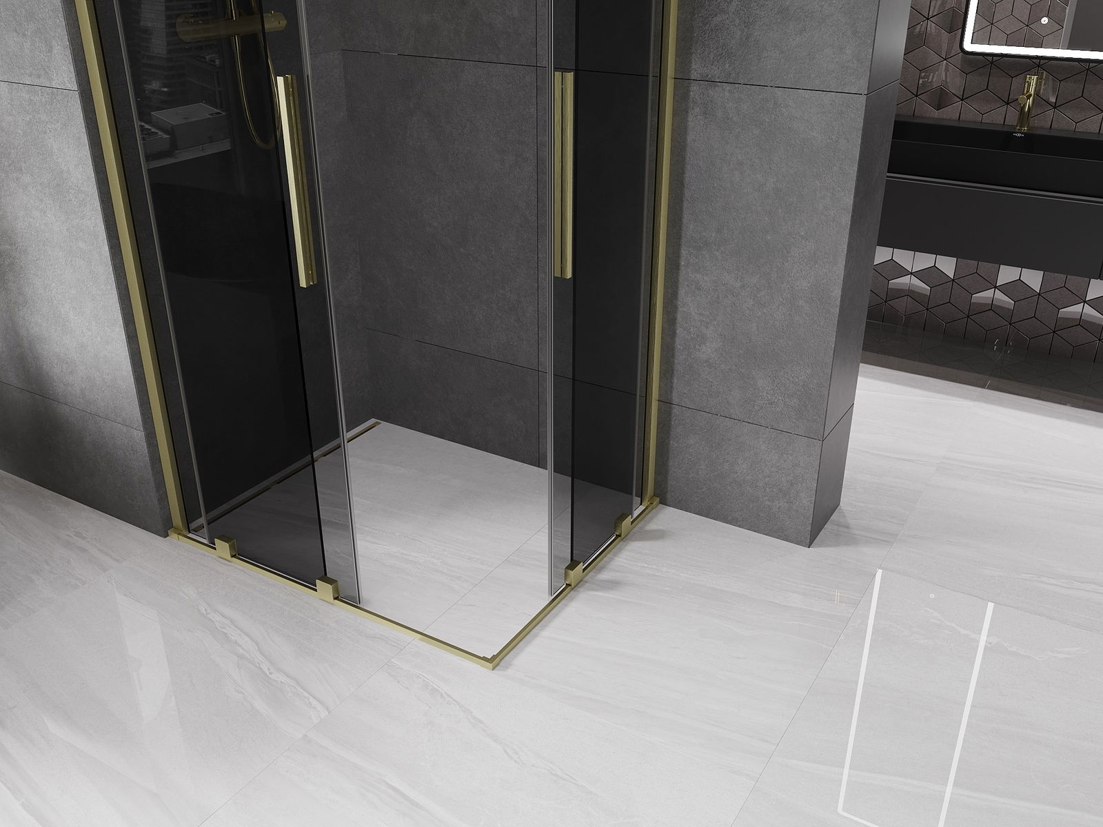 Mexen Velar Duo schuifdouchecabine 100 x 90 cm, grafiet, geborsteld goud - 871-100-090-42-55