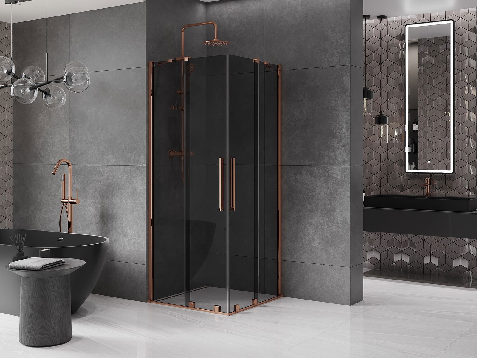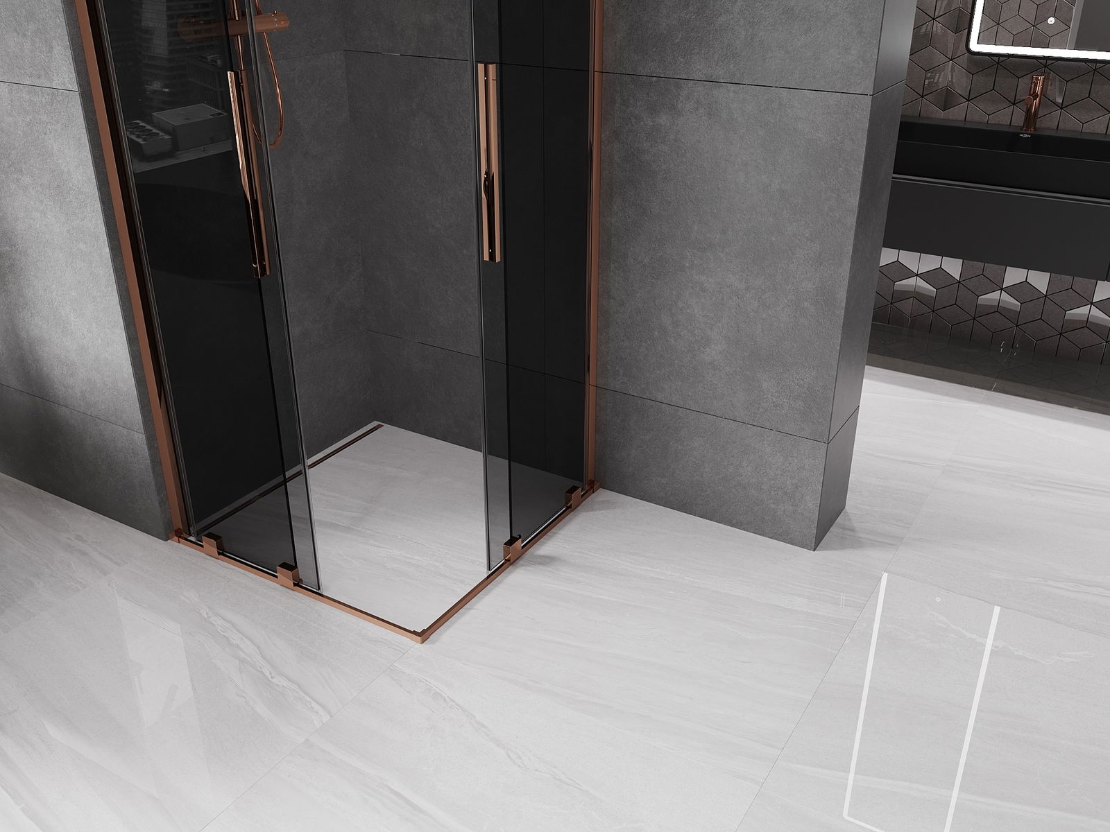 Mexen Velar Duo schuifbare douchecabine 90 x 90 cm, grafiet, roze goud - 871-090-090-42-60