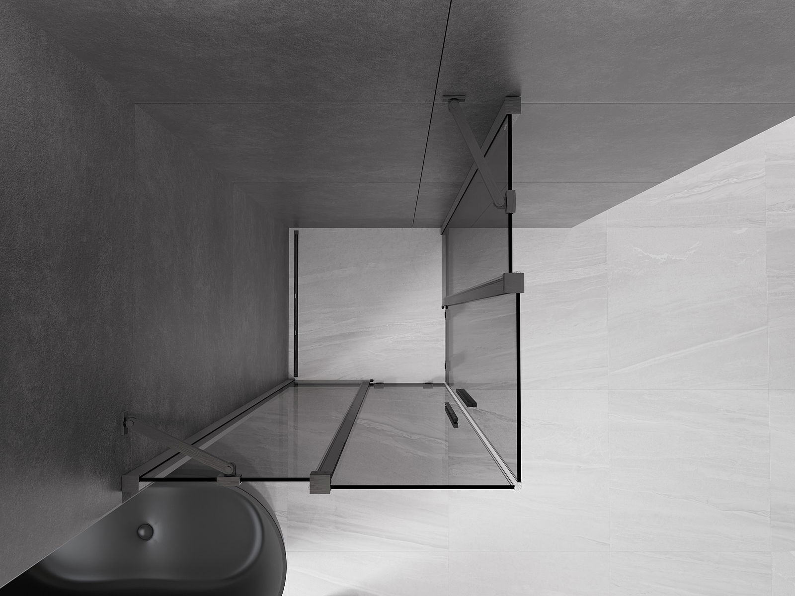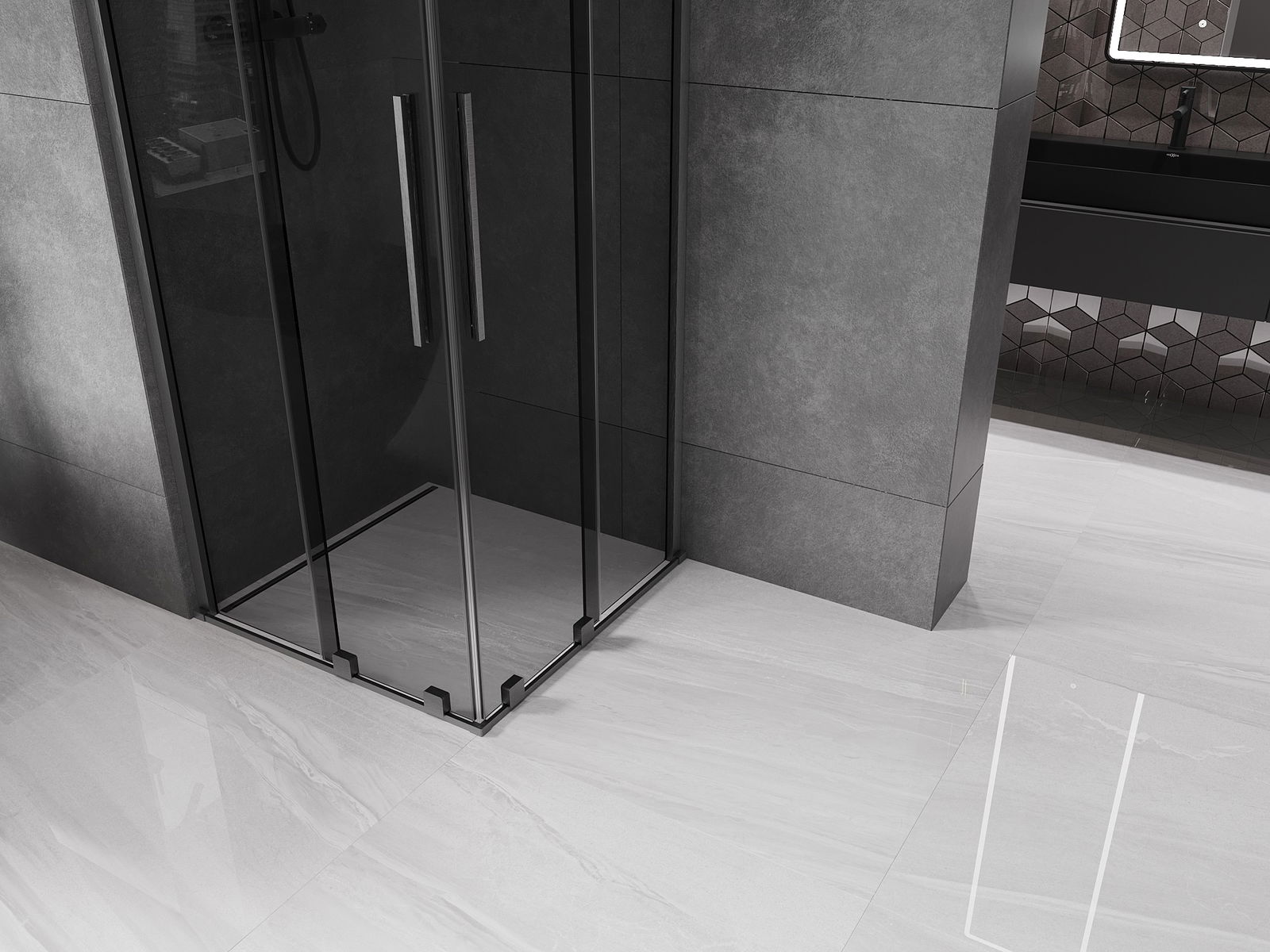 Het handige en comfortabele handvat is gemaakt van roestvrij staal. De modieuze vorm in combinatie met de afwerking die is afgestemd op de kleur van de profielen geeft het geheel een moderne en stijlvolle uitstraling, en benadrukt de esthetiek van elke badkamer.