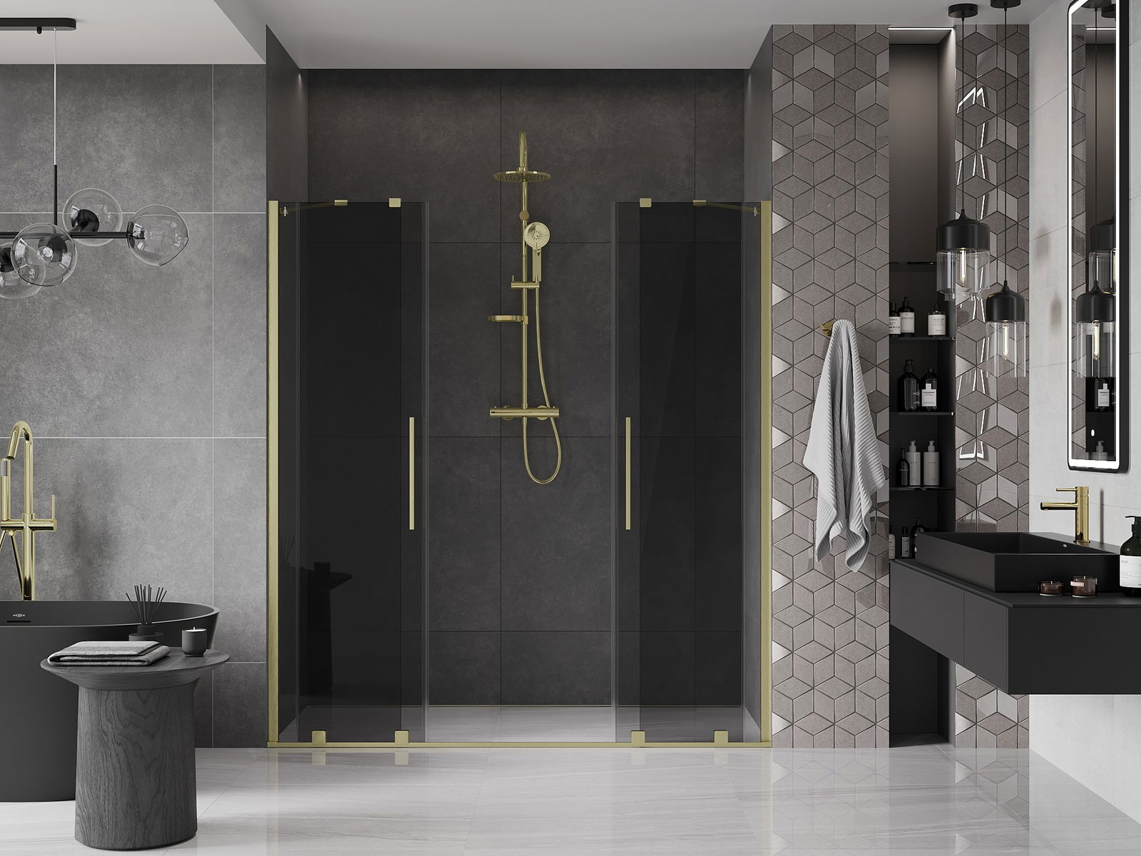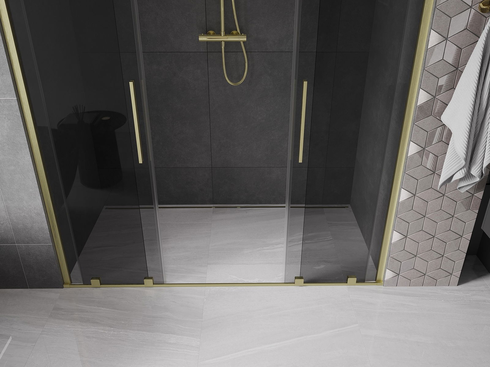 Mexen Velar Duo schuifdouchedeur 200 cm, grafiet, goud geborsteld - 871-200-000-42-55
