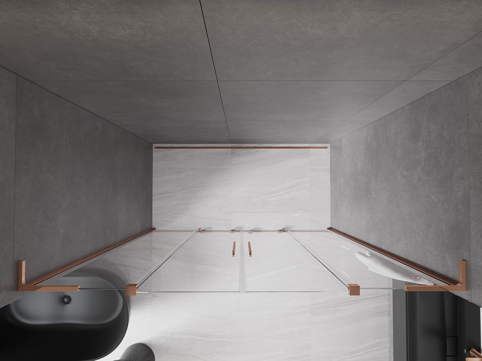 Het handige en comfortabele handvat is gemaakt van roestvrij staal. De modieuze vorm in combinatie met de afwerking die is afgestemd op de kleur van de profielen geeft het geheel een moderne en stijlvolle uitstraling, en benadrukt de esthetiek van elke badkamer.