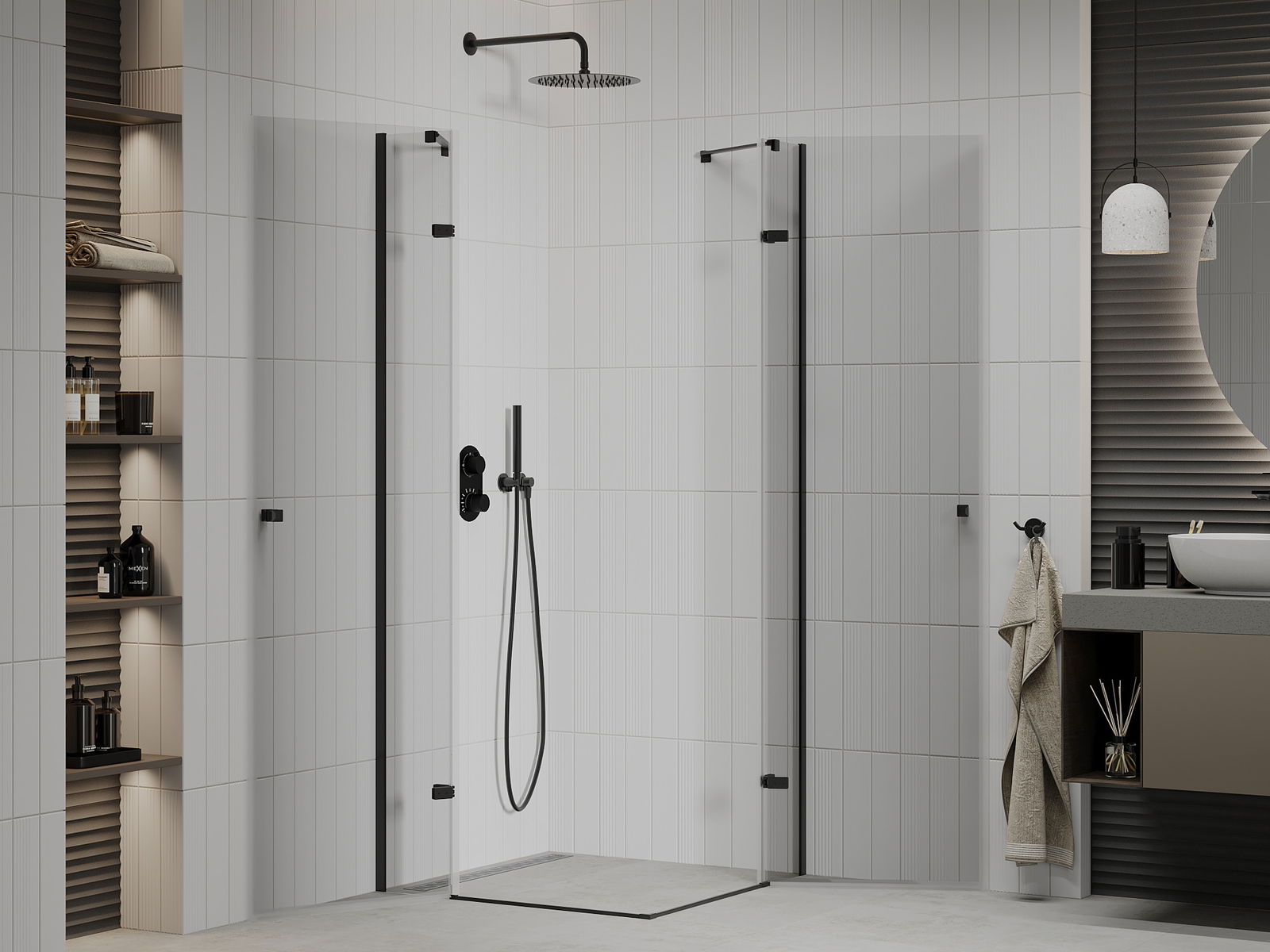 Dankzij het gebruik van een universeel montagesysteem kunnen douchedeuren naar behoefte aan de rechter- of linkerkant worden gemonteerd. Hierdoor kun je gemakkelijk een douche ontwerpen die aan de ruimte in de badkamer is aangepast.