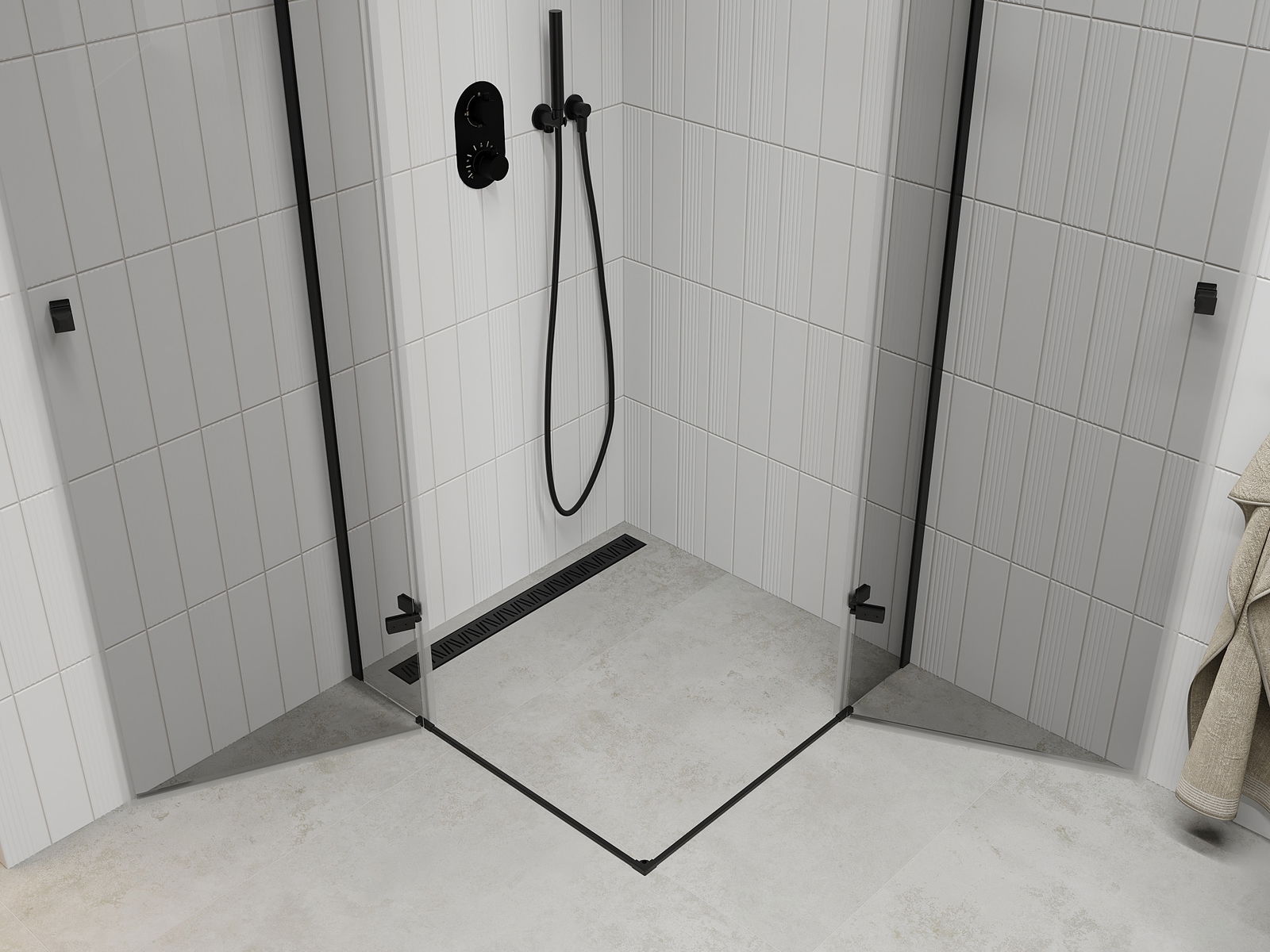 Het product kan naar behoefte zowel op de douchebak als direct op de vloer worden gemonteerd. De universele montagewijze maakt het mogelijk het product aan te passen aan verschillende soorten badkamers en ruimtelijke configuraties.