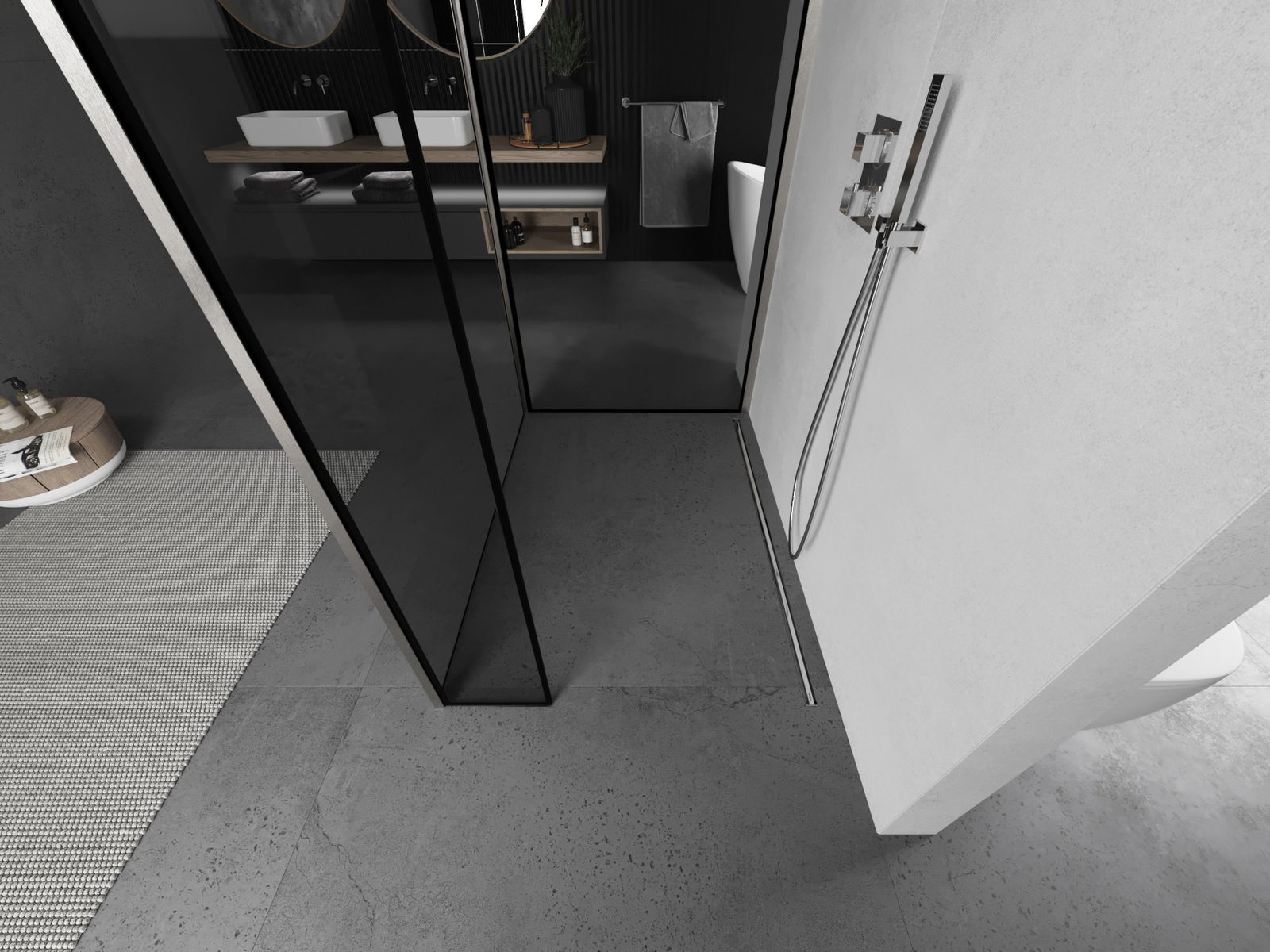 Het product kan naar behoefte zowel op de douchebak als direct op de vloer worden gemonteerd. De universele montagewijze maakt het mogelijk het product aan te passen aan verschillende soorten badkamers en ruimtelijke configuraties.
