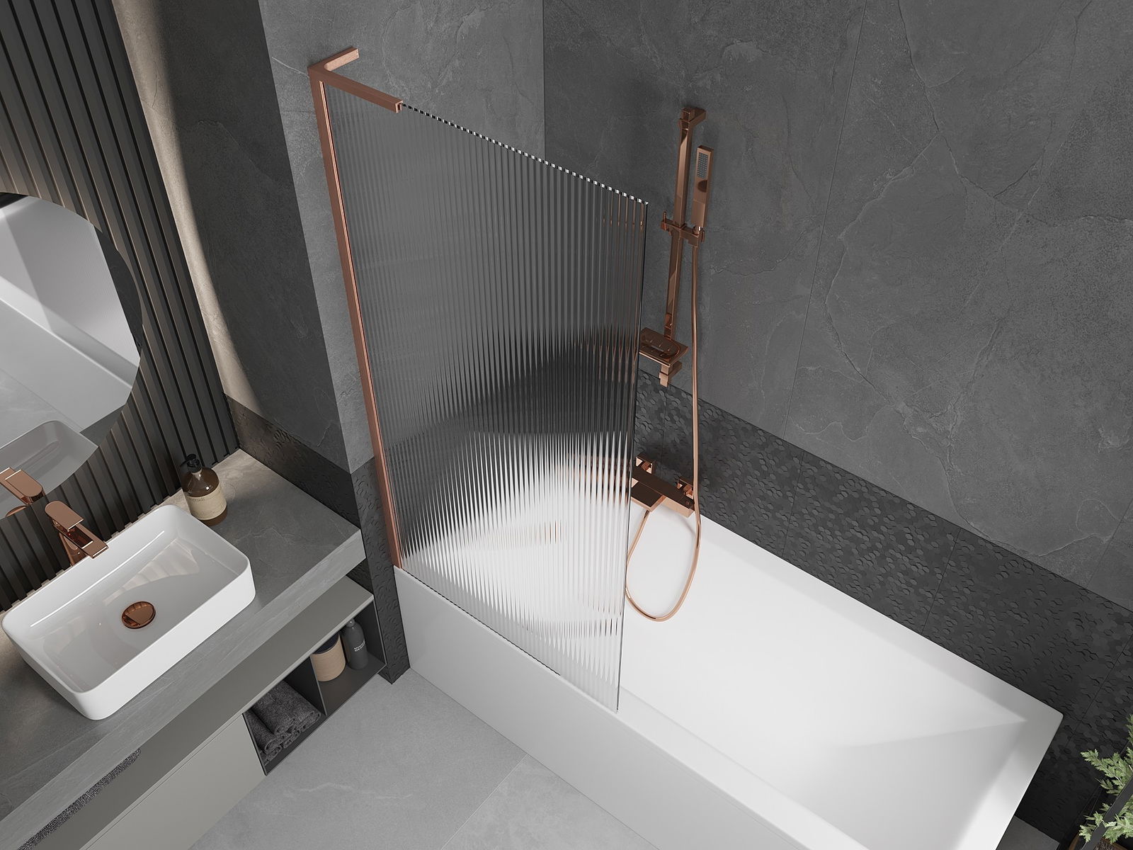 Mexen Next L badwand 1-delig 80 x 150 cm, strepen, geborsteld koper - 895-080-000-03-09-65
