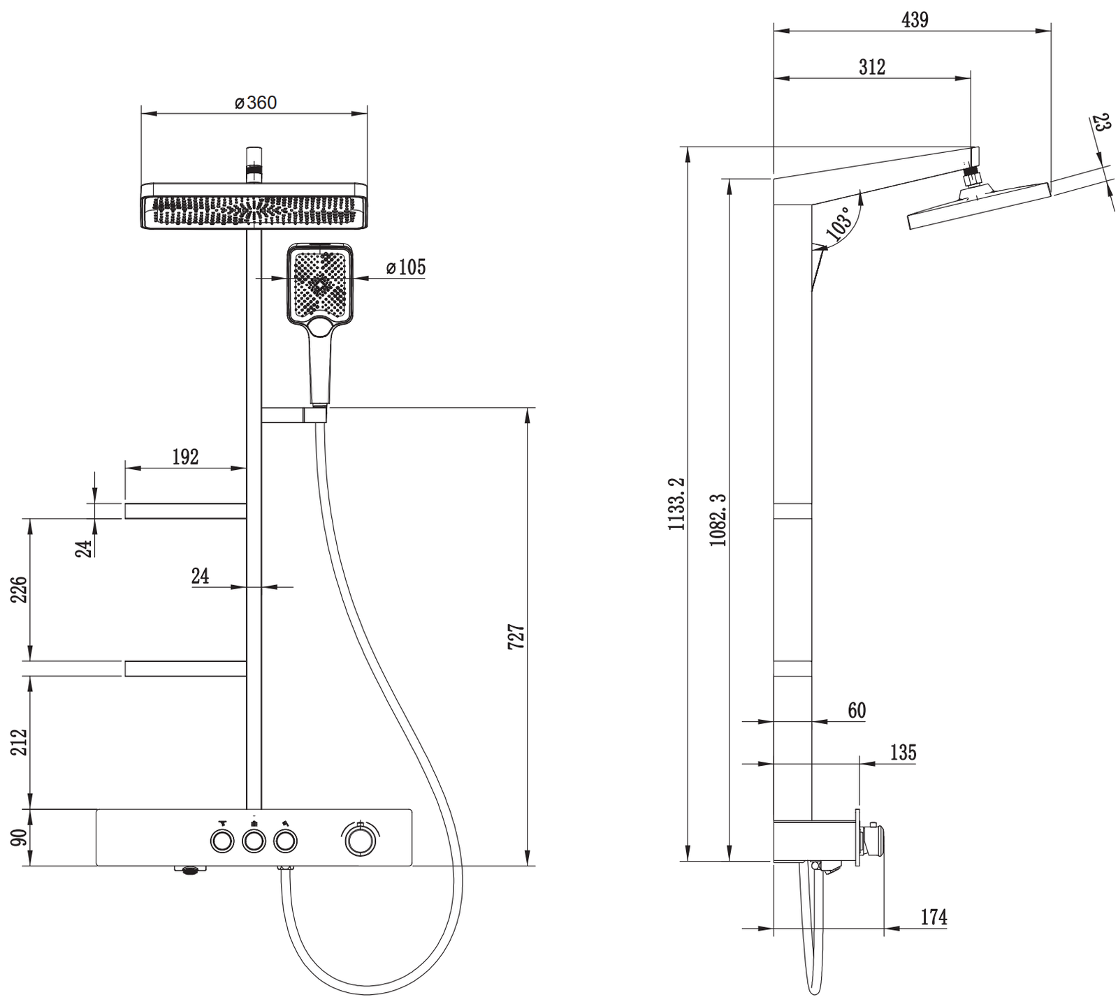Grootte regendouche: 230 x 360 mm